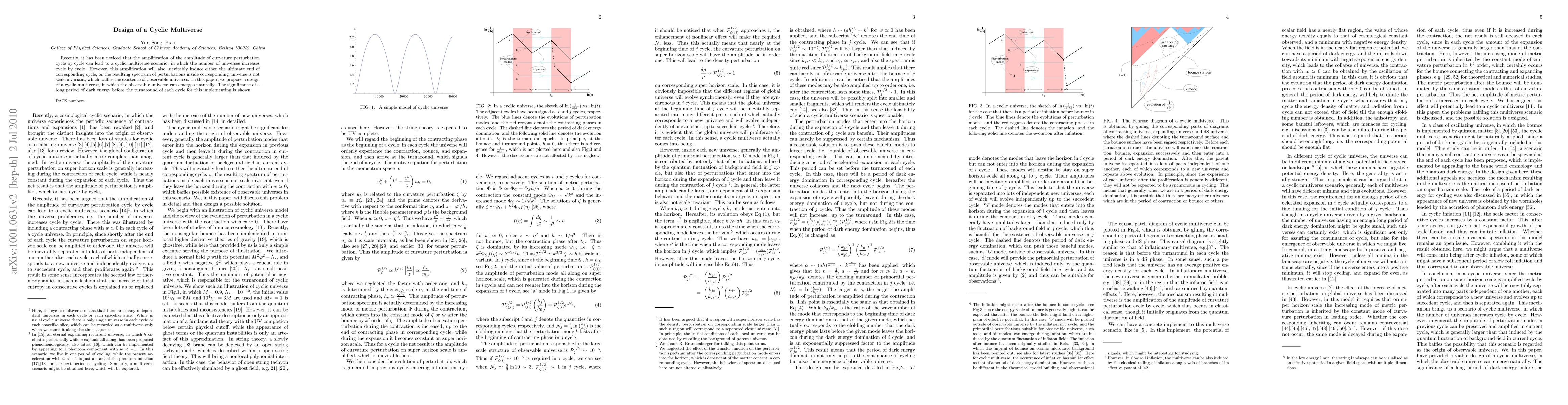 Researchers propose a design for a cyclic multiverse where the observable universe emerges naturally, overcoming issues with cycle amplification and scale invariance. A long period of dark energy before each cycle's turnaround is crucial to this implementation.