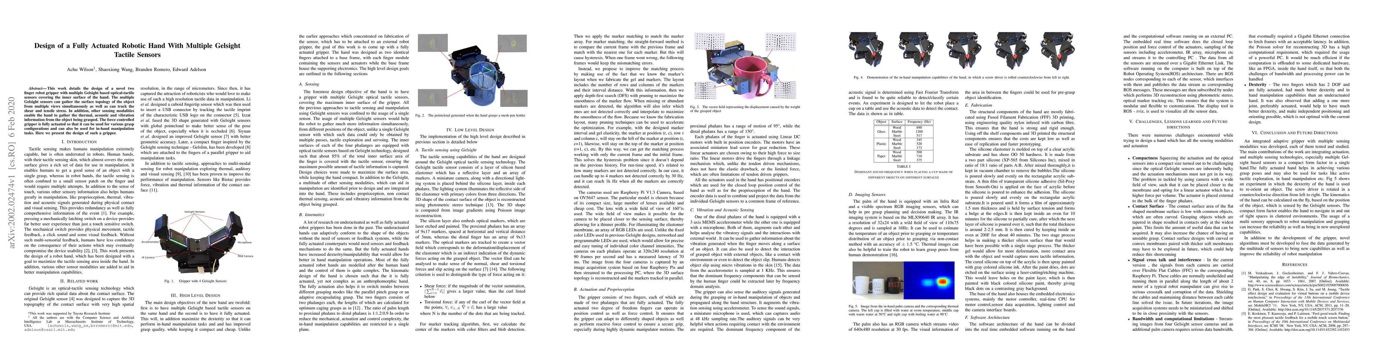 This paper presents the design of a fully actuated robotic hand with two fingers equipped with Gelsight optical-tactile sensors for multi-view surface topology mapping and stress tracking, along with additional sensors for thermal, acoustic, and vibration sensing to facilitate in-hand manipulation tasks.