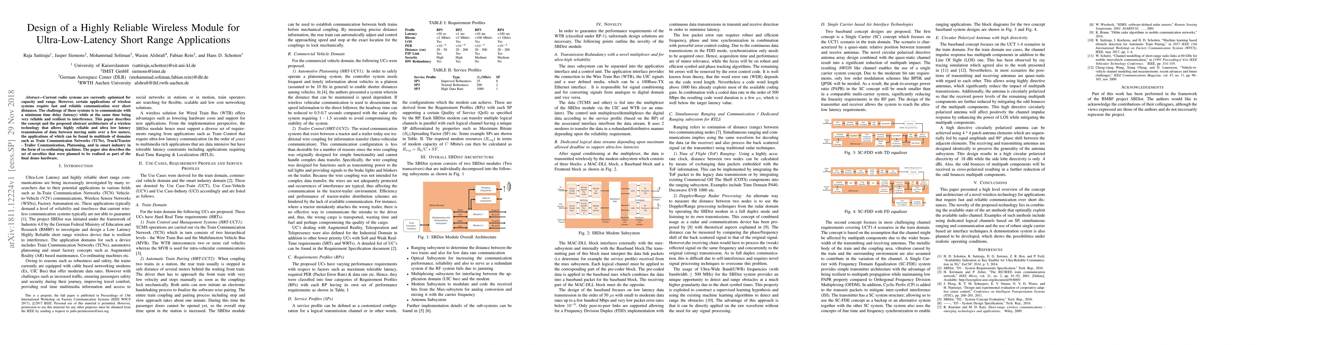 Current radio systems are currently optimized for capacity and range. However, certain applications of wireless systems require fast and reliable communication over short distances. The challenge of these systems is to communicate with a minimum time delay (latency) while at the same time being very reliable and resilient to interference. This paper describes the concept and the proposed abstract architecture of a wireless technology that allows highly reliable and ultra low latency transmission of data between moving units over a few meters, the applications of which can be found in multitude of domains such as Train Communicaion Networks (TCNs), Truck/Tractor - Trailer Communication, Platooning, and in smart industry in the form of co-ordinating machines. The paper also describes the set of novelties that were planned to be realized as part of the final demo hardware