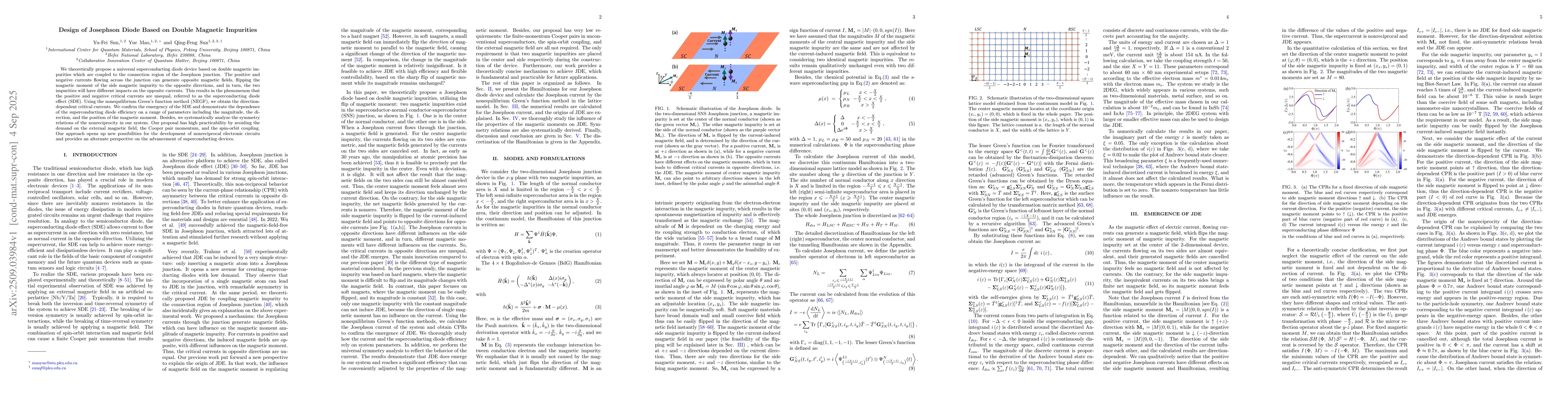 We theoretically propose a universal superconducting diode device based on double magnetic impurities which are coupled to the connection region of the Josephson junction. The positive and negative currents flowing across the junction can generate opposite magnetic fields, flipping the magnetic moment of the side magnetic impurity to the opposite directions, and in turn, the two impurities will have different impacts on the opposite currents. This results in the phenomenon that the positive and negative critical currents are unequal, referred to as the superconducting diode effect (SDE). Using the nonequilibrium Green's function method (NEGF), we obtain the direction-dependent critical currents. We confirm the emergency of the SDE and demonstrate the dependence of the superconducting diode efficiency on a range of parameters including the magnitude, the direction, and the position of the magnetic moment. Besides, we systematically analyze the symmetry relations of the nonreciprocity in our system. Our proposal has high practicability by avoiding the demand on the external magnetic field, the Cooper pair momentum, and the spin-orbit coupling. Our approach opens up new possibilities for the development of nonreciprocal electronic circuits and provides an alternate perspective on the advancement of superconducting devices.