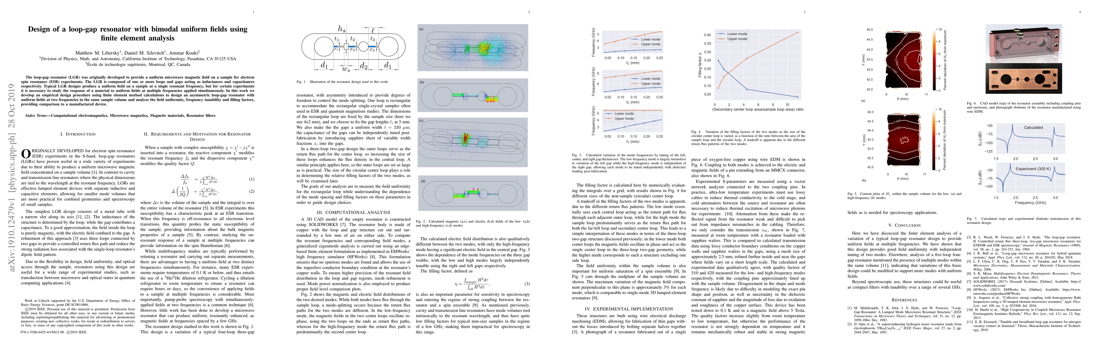 This paper presents a design procedure for an asymmetric loop-gap resonator (LGR) using finite element analysis to achieve uniform magnetic fields at two frequencies simultaneously. The study evaluates field uniformity, frequency tunability, and filling factors, comparing the theoretical design to a manufactured prototype.