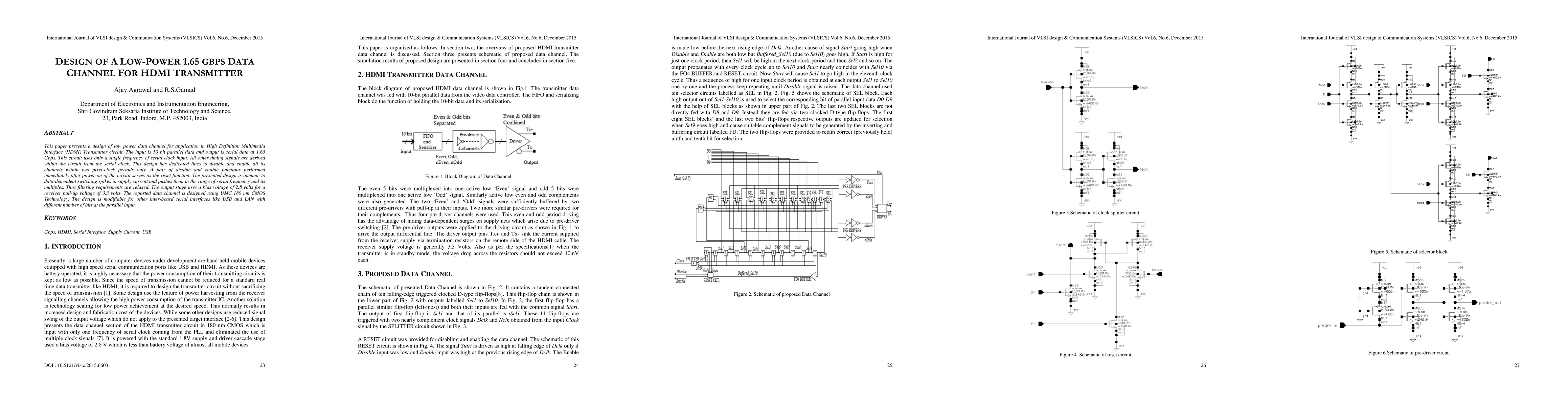 This paper designs a low-power data channel for HDMI transmitters operating at 1.65 Gbps, utilizing a single serial clock frequency and minimizing power spikes, thus simplifying filtering requirements. The design is adaptable for other serial interfaces like USB and LAN.