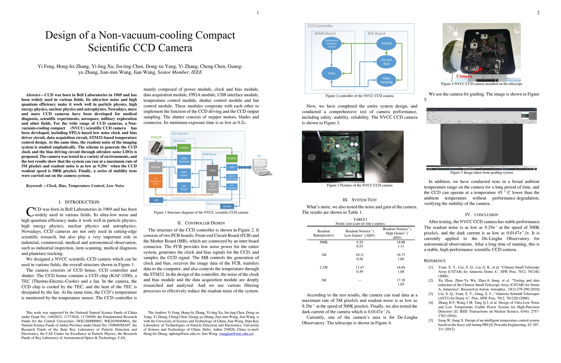 CCD was born in Bell Laboratories in 1969 and has been widely used in various fields. Its ultra-low noise and high quantum efficiency make it work well in particle physics, high energy physics, nuclear physics and astrophysics. Nowadays, more and more CCD cameras have been developed for medical diagnosis, scientific experiments, aerospace, military exploration and other fields. For the wide range of CCD cameras, a Non-vacuum-cooling compact (NVCC) scientific CCD camera has been developed, including FPGA-based low noise clock and bias driver circuit, data acquisition circuit, STM32-based temperature control design. At the same time, the readout noise of the imaging system is studied emphatically. The scheme to generate the CCD clock and the bias driving circuit through ultralow noise LDOs is proposed. The camera was tested in a variety of environments, and the test results show that the system can run at a maximum rate of 5M pixels/s and readout noise is as low as 9.29e^- when the CCD readout speed is 500K pixels/s. Finally, a series of stability tests were carried out on the camera system.