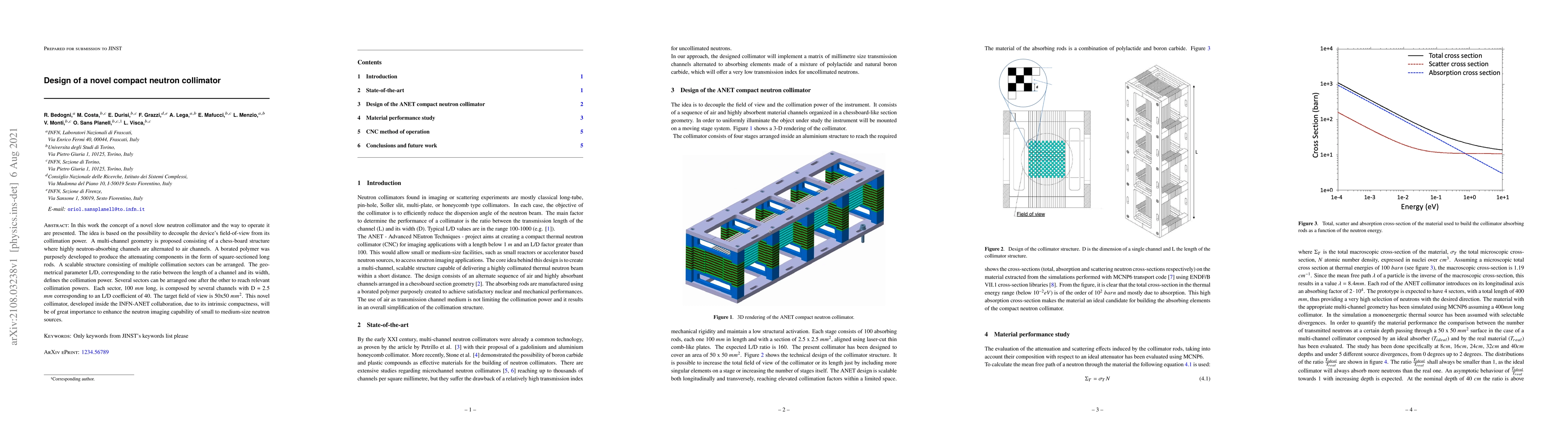 This paper introduces a novel compact neutron collimator with a multi-channel chess-board structure, featuring alternating neutron-absorbing and air channels. The design allows decoupling of field-of-view from collimation power, enhancing neutron imaging capabilities for small to medium-sized neutron sources.