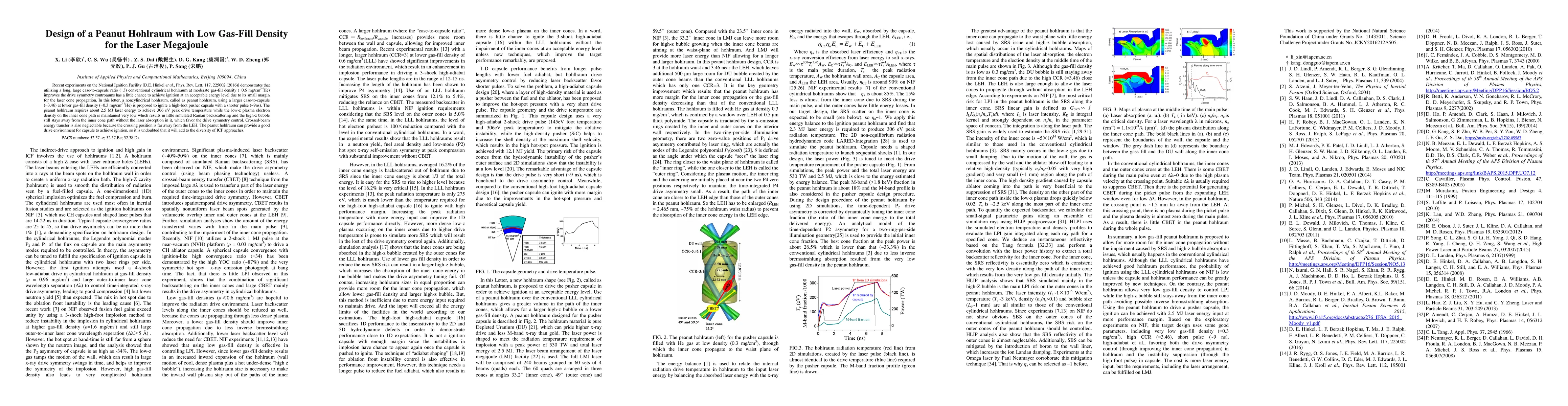Recent experiments on the National Ignition Facility [D.E. Hinkel et al., Phys. Rev. Lett. 117, 225002 (2016)] demonstrates that utilizing a long, large case-to-capsule ratio (=3) conventional cylindrical hohlraum at moderate gas-fill density (=0.6 mg/cm3 4He) improves the drive symmetry controaums has a little chance to achieve ignition at an acceptable energy level due to its small margin for the laser cone propagation. In this letter, a noncylindrical hohlraum, called as peanut hohlraum, using a larger case-to-capsule (=3.46) at lower gas-fill density (=0.3 mg/cm3 4He) is proposed to ignite a high-foot pusher capsule with a shorter pulse (~9ns). The peanut hohlraum requires about 2.5 MJ laser energy to achieve 306 eV peak drive temperature while the low-z plasma electron density on the inner cone path is maintained very low which results in little simulated Raman backscattering and the high-z bubble still stays away from the inner cone path without the laser absorption in it, which favor the drive symmetry control. Crossed-beam energy transfer is also neglectable because the crossing position is far away from the LEH. The peanut hohlraum can provide a good drive environment for capsule to achieve ignition, so it is undoubted that it will add to the diversity of ICF approaches.