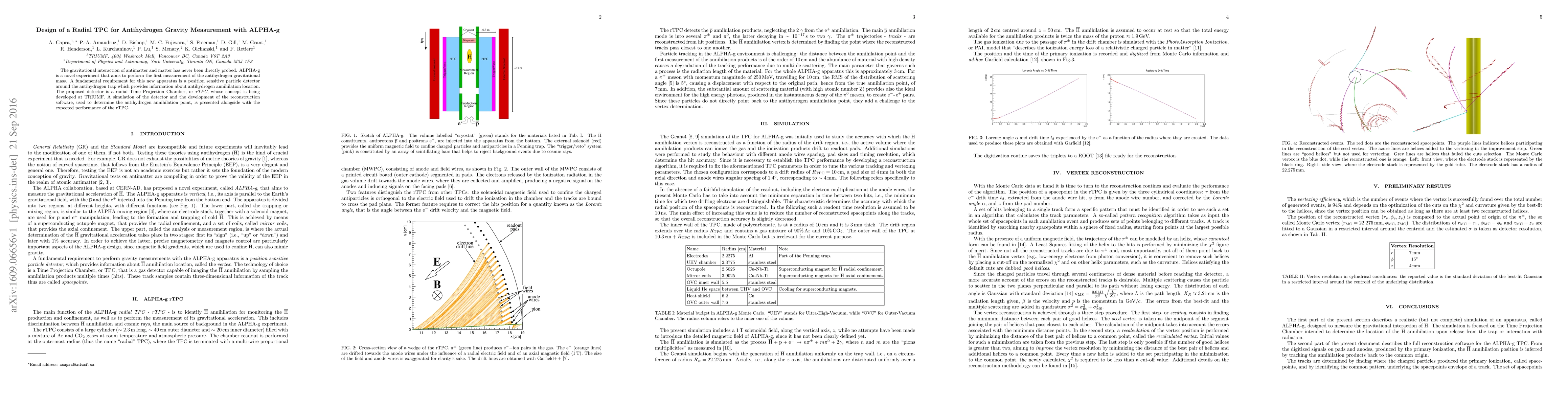 The gravitational interaction of antimatter and matter has never been directly probed. ALPHA-g is a novel experiment that aims to perform the first measurement of the antihydrogen gravitational mass. A fundamental requirement for this new apparatus is a position sensitive particle detector around the antihydrogen trap which provides information about antihydrogen annihilation location. The proposed detector is a radial Time Projection Chamber, or \textit{rTPC}, whose concept is being developed at TRIUMF. A simulation of the detector and the development of the reconstruction software, used to determine the antihydrogen annihilation point, is presented alongside with the expected performance of the rTPC.