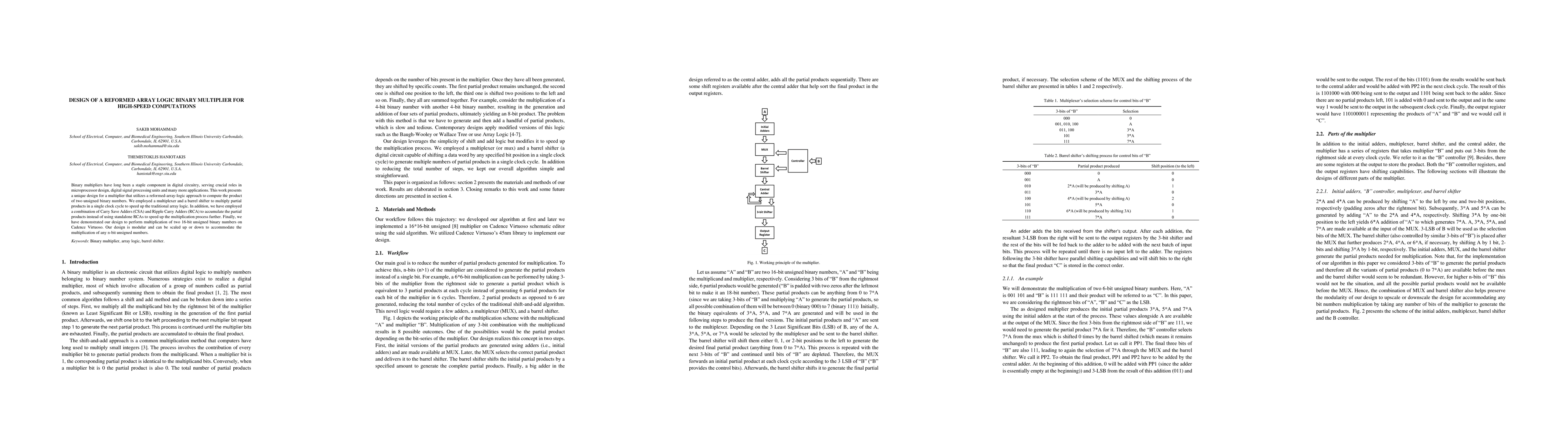 This paper introduces a novel binary multiplier design utilizing reformed-array logic, employing multiplexers, barrel shifters, and a combination of Carry Save and Ripple Carry Adders to achieve high-speed computations, tested for 16-bit multiplications, and scalable for various bit sizes.