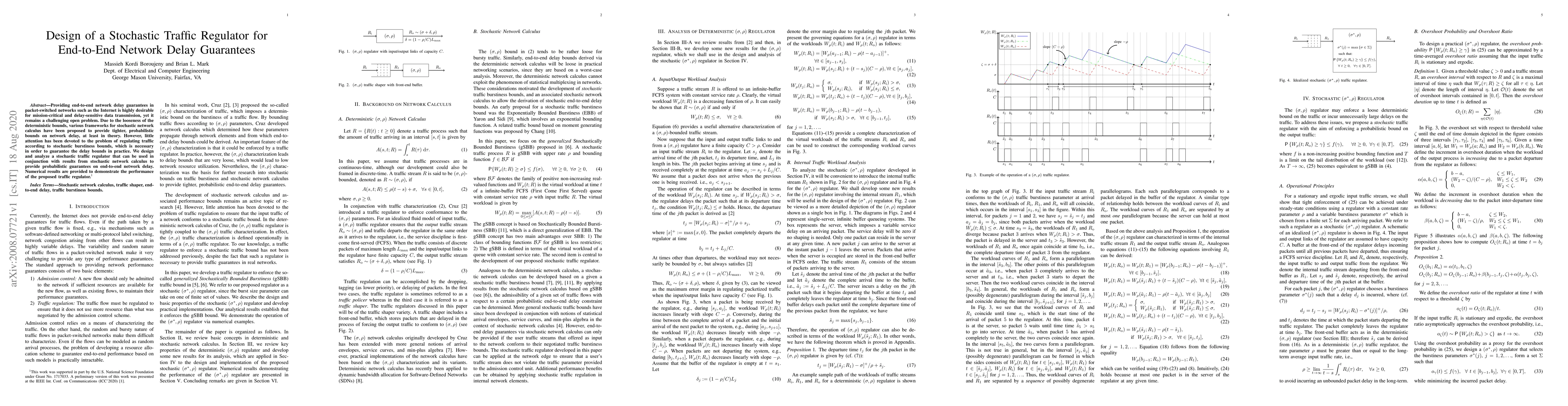 This paper designs a stochastic traffic regulator to ensure probabilistic end-to-end network delay guarantees in packet-switched networks. The regulator complements stochastic network calculus to practically manage traffic burstiness, supported by numerical results.
