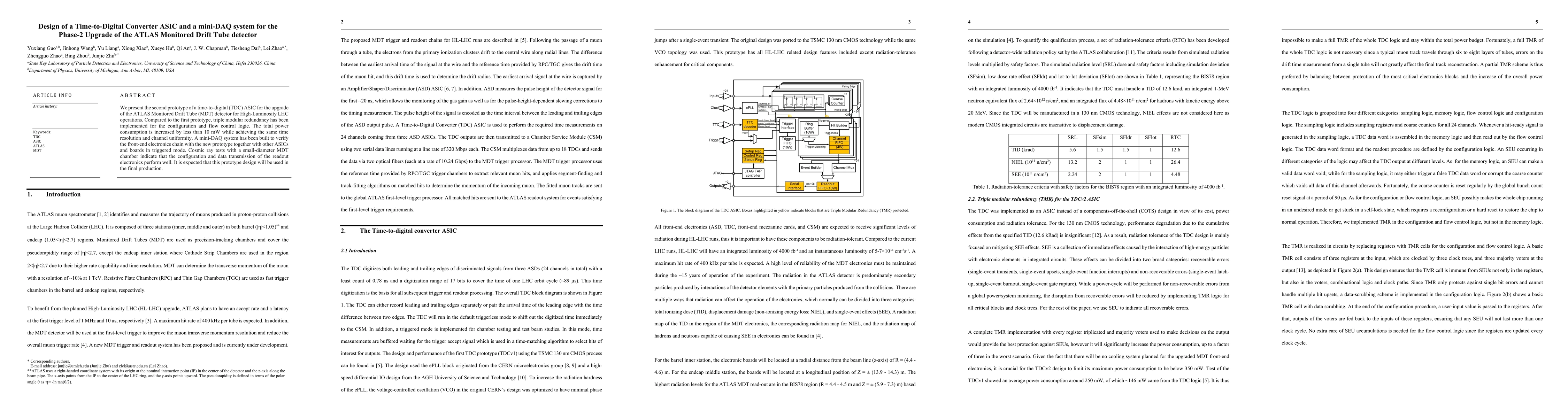 We present the second prototype of a time-to-digital (TDC) ASIC for the upgrade of the ATLAS Monitored Drift Tube (MDT) detector for High-Luminosity LHC operations. Compared to the first prototype, triple modular redundancy has been implemented for the configuration and flow control logic. The total power consumption is increased by less than 10 mW while achieving the same time resolution and channel uniformity. A mini-DAQ system has been built to verify the front-end electronics chain with the new prototype together with other ASICs and boards in triggered mode. Cosmic ray tests with a small-diameter MDT chamber indicate that the configuration and data transmission of the readout electronics perform well. It is expected that this prototype design will be used in the final production.