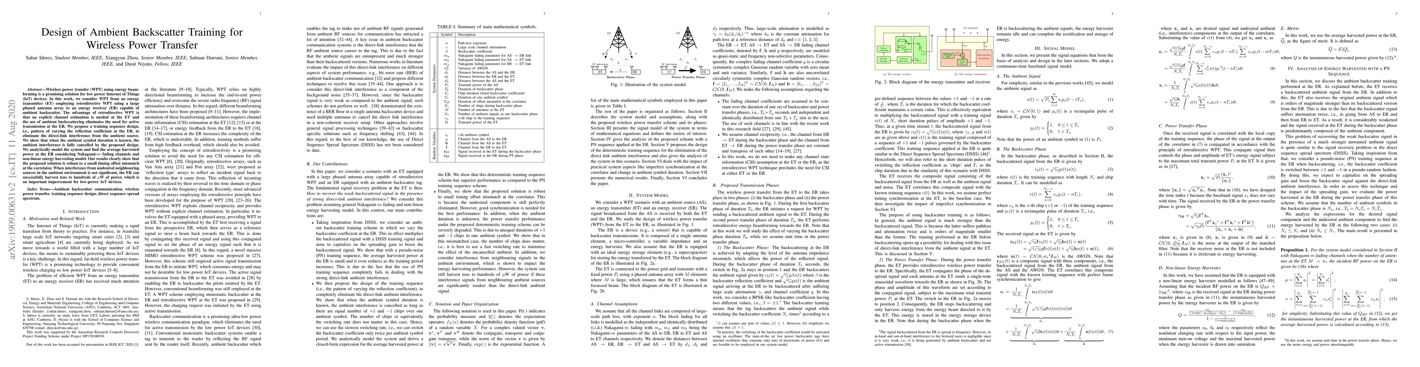 Wireless power transfer (WPT) using energy beamforming is a promising solution for low power Internet of Things (IoT) devices. In this work, we consider WPT from an energy transmitter (ET) employing retrodirective WPT using a large phased antenna array to an energy receiver (ER) capable of ambient backscatter. The advantage of retrodirective WPT is that no explicit channel estimation is needed at the ET and the use of ambient backscattering eliminates the need for active transmission at the ER. We propose a training sequence design, i.e., pattern of varying the reflection coefficient at the ER, to eliminate the direct-link interference from the ambient source. We show that when the ambient symbol duration is known, the ambient interference is fully cancelled by the proposed design. We analytically model the system and find the average harvested power at the ER considering Nakagami-$m$ fading channels and non-linear energy harvesting model. Our results clearly show that the proposed solution is robust to a small timing offset mismatch at the correlator. When interference from undesired neighbouring sources in the ambient environment is not significant, the ER can successfully harvest tens to hundreds of $\mu$W of power, which is an important improvement for low-power IoT devices.