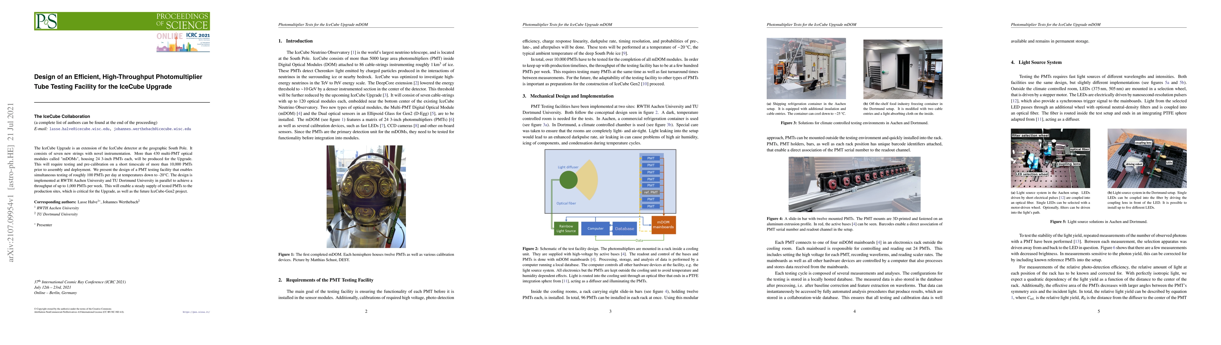 The IceCube Upgrade is an extension of the IceCube detector at the geographic South Pole. It consists of seven new strings with novel instrumentation. More than 430 multi-PMT optical modules called "mDOMs", housing 24 3-inch PMTs each, will be produced for the Upgrade. This will require testing and pre-calibration on a short timescale of more than 10,000 PMTs prior to assembly and deployment. We present the design of a PMT testing facility that enables simultaneous testing of roughly 100 PMTs per day at temperatures down to -20{\deg}C. The design is implemented at RWTH Aachen University and TU Dortmund University in parallel to achieve a throughput of up to 1,000 PMTs per week. This will enable a steady supply of tested PMTs to the production sites, which is critical for the Upgrade, as well as the future IceCube-Gen2 project.