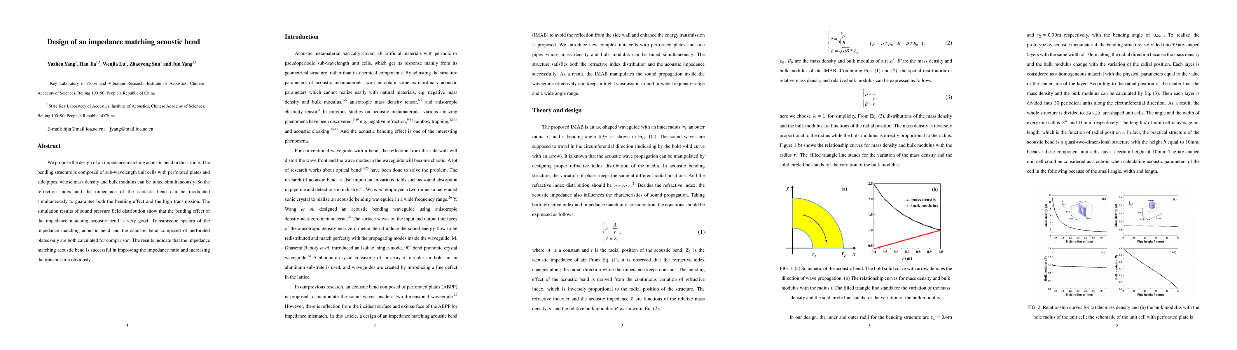 This research proposes an impedance matching acoustic bend composed of sub-wavelength unit cells with tunable mass density and bulk modulus, achieving both effective bending and high transmission. Simulation results demonstrate improved transmission and better bending performance compared to traditional bends.