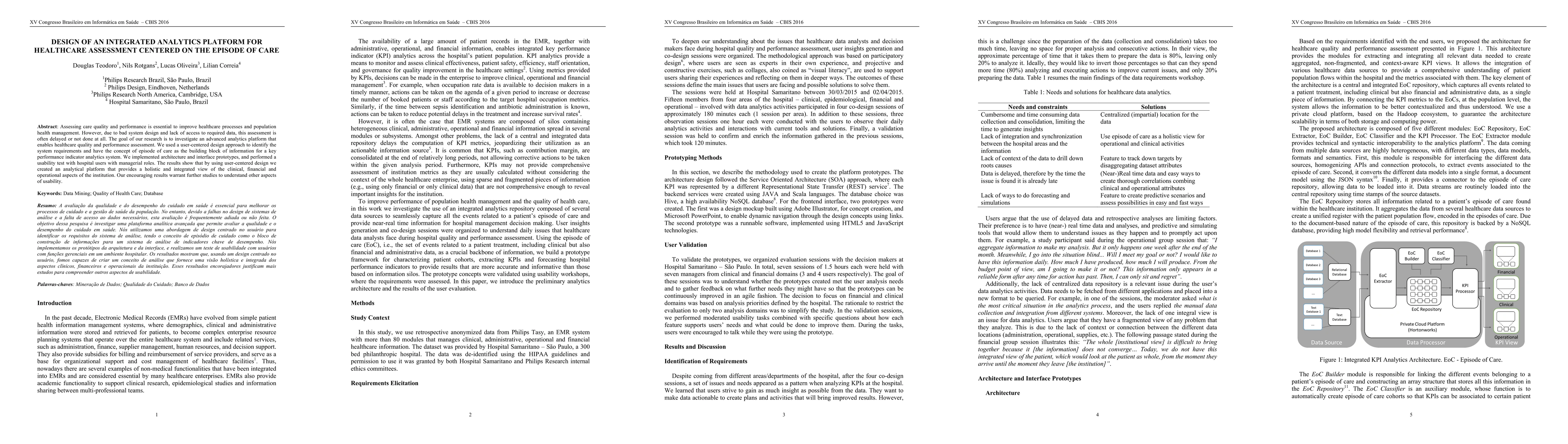Assessing care quality and performance is essential to improve healthcare processes and population health management. However, due to bad system design and lack of access to required data, this assessment is often delayed or not done at all. The goal of our research is to investigate an advanced analytics platform that enables healthcare quality and performance assessment. We used a user-centered design approach to identify the system requirements and have the concept of episode of care as the building block of information for a key performance indicator analytics system. We implemented architecture and interface prototypes, and performed a usability test with hospital users with managerial roles. The results show that by using user-centered design we created an analytical platform that provides a holistic and integrated view of the clinical, financial and operational aspects of the institution. Our encouraging results warrant further studies to understand other aspects of usability.
