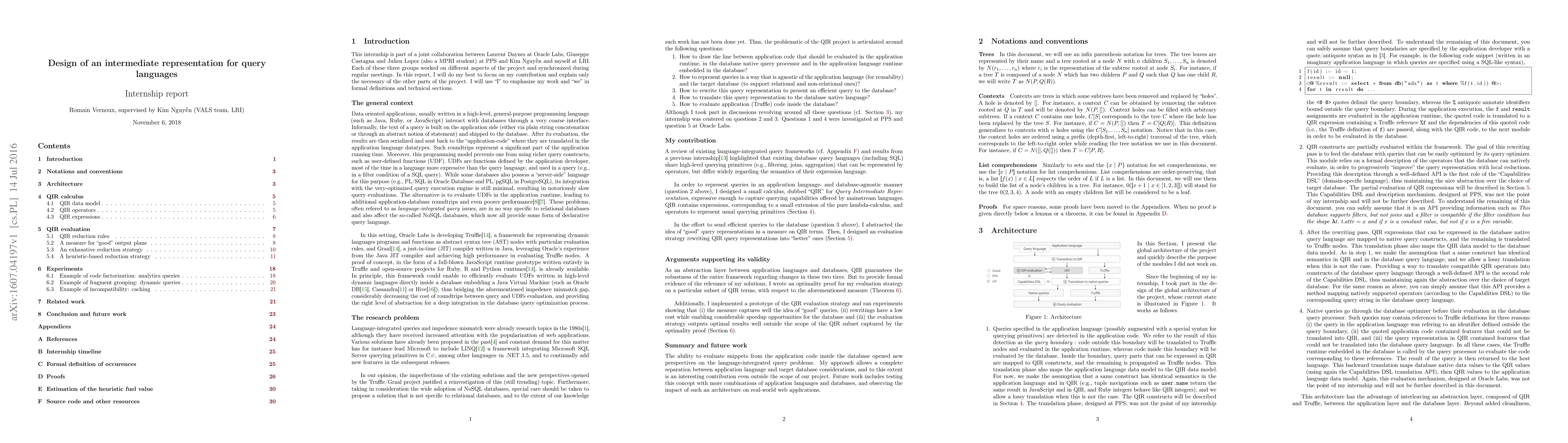 The research paper introduces QIR, a Query Intermediate Representation, designed to represent queries in a language- and database-agnostic manner. It extends lambda-calculus with expressions and operators for querying primitives, aiming to improve query efficiency sent to databases, by rewriting QIR query representations into 'better' ones based on a 'good' query representation measure.