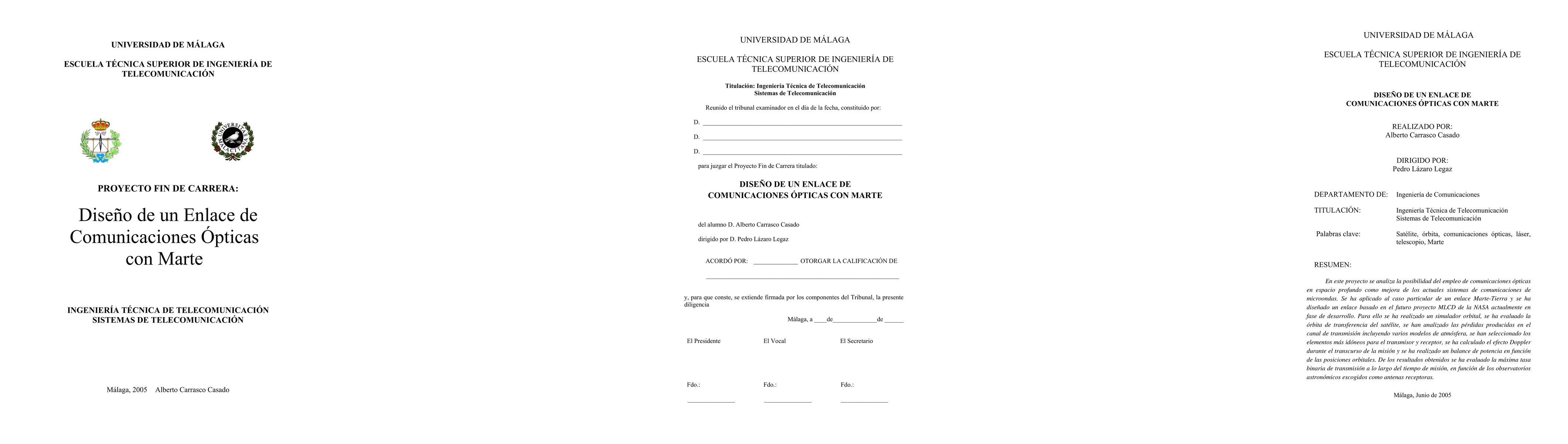 The possibility of using optical communications in free-space as an improvement of current RF communication systems was analyzed in this Project. The particular case of a link Mars-Earth was studied and a link based in the future NASA's MLCD project, which is currently being developed, was designed. For this, an orbit simulator was programmed, evaluating the transfer orbit, analyzing the losses that occur in the transmission channel, using several atmospheric models, selecting the most adequate elements for the transmitter and the receiver, calculating the Doppler effect during the mission, and performing a budget link for the different orbit positions. From these results, the maximum bitrate through the MLCD mission was evaluated for the different astronomical observatories chosen as optical ground stations.