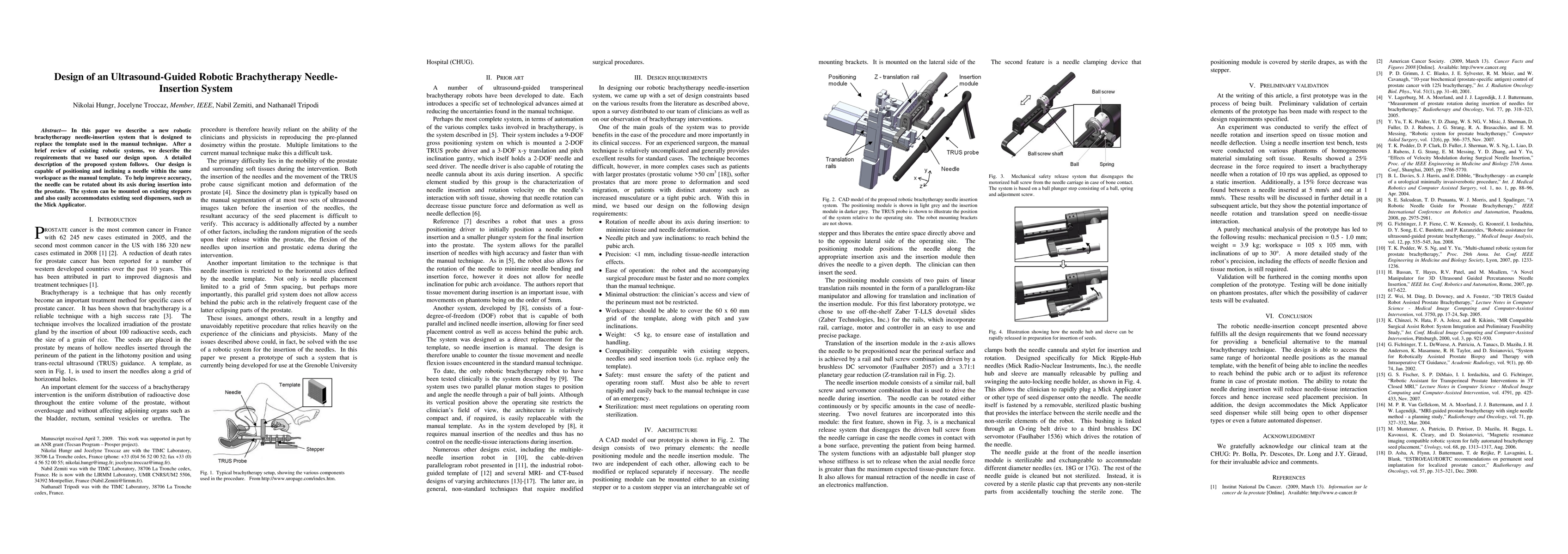 In this paper we describe a new robotic brachytherapy needle-insertion system that is designed to replace the template used in the manual technique. After a brief review of existing robotic systems, we describe the requirements that we based our design upon. A detailed description of the proposed system follows. Our design is capable of positioning and inclining a needle within the same workspace as the manual template. To help improve accuracy, the needle can be rotated about its axis during insertion into the prostate. The system can be mounted on existing steppers and also easily accommodates existing seed dispensers, such as the Mick Applicator.