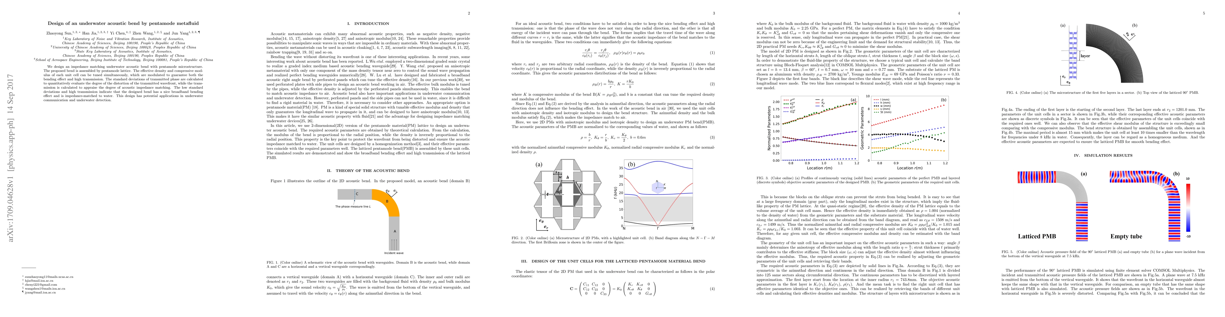 This paper proposes an underwater acoustic bend utilizing pentamode microstructure to achieve impedance matching and effective wavefront bending. The designed bend features tunable effective density and modulus, ensuring high transmission and minimal wavefront distortion, with potential applications in underwater communication and detection.