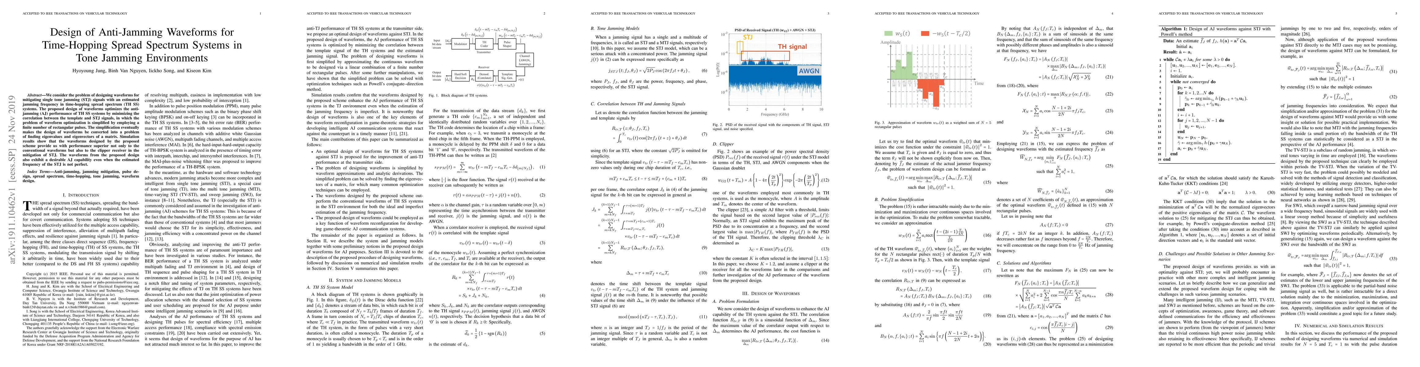 We consider the problem of designing waveforms for mitigating single tone jamming (STJ) signals with an estimated jamming frequency in time-hopping spread spectrum (TH SS) systems. The proposed design of waveforms optimizes the anti-jamming (AJ) performance of TH SS systems by minimizing the correlation between the template and STJ signals, in which the problem of waveform optimization is simplified by employing a finite number of rectangular pulses. The simplification eventually makes the design of waveforms be converted into a problem of finding eigenvalues and eigenvectors of a matrix. Simulation results show that the waveforms designed by the proposed scheme provide us with performance superior not only to the conventional waveforms but also to the clipper receiver in the mitigation of STJ. The waveforms from the proposed design also exhibit a desirable AJ capability even when the estimated frequency of the STJ is not perfect.