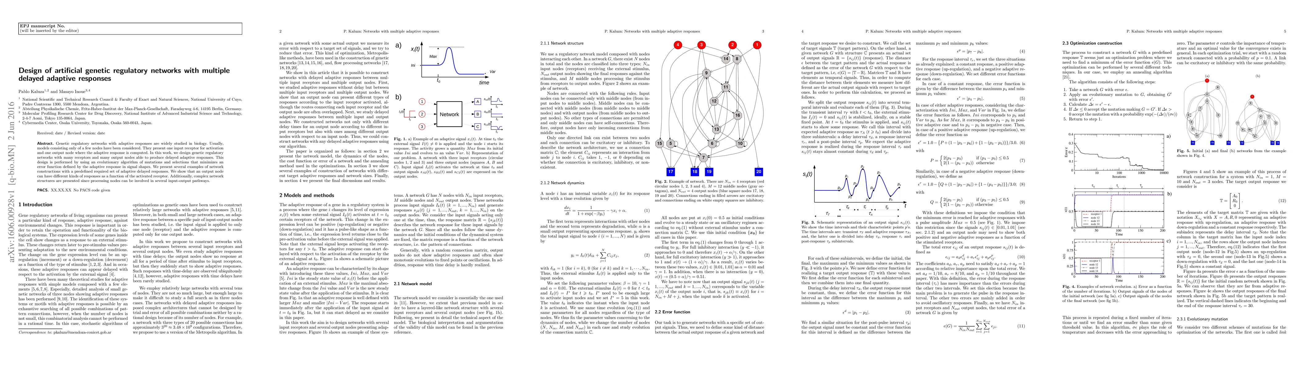 This paper designs complex genetic regulatory networks using evolutionary algorithms to create adaptive responses with multiple delayed signals. The networks feature numerous receptors and output nodes, demonstrating diverse adaptive responses based on receptor activation and complex network structures with multiple input-output pathways.