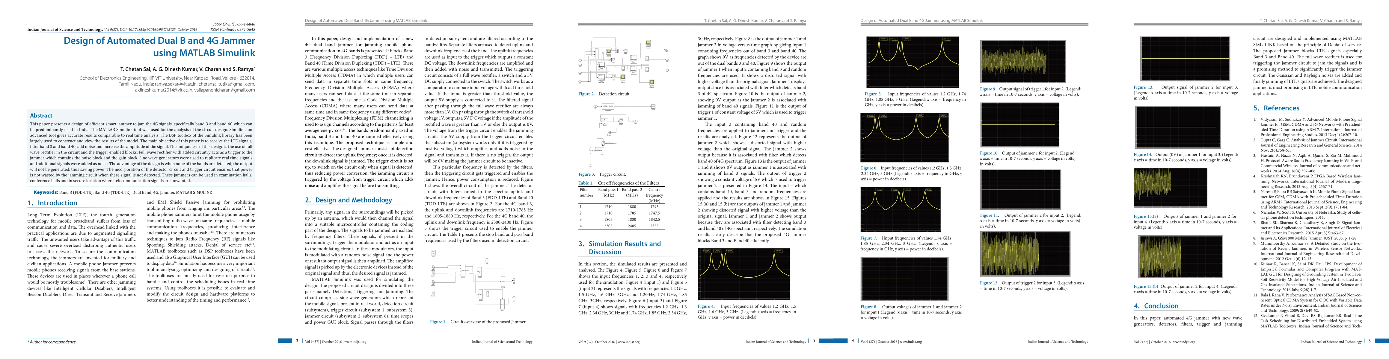 Researchers designed an efficient 4G jammer using MATLAB Simulink to block specific LTE bands in India, featuring a full wave rectifier and trigger circuit for power savings.