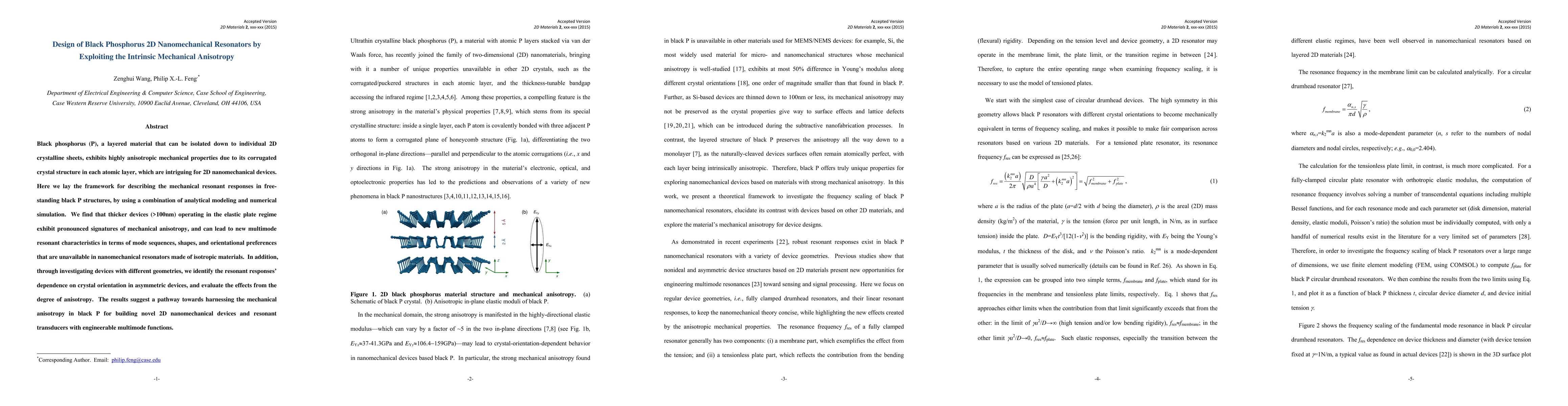 This paper presents a framework for understanding the mechanical resonant responses of free-standing black phosphorus nanomechanical resonators, leveraging their intrinsic mechanical anisotropy. The study reveals that anisotropic black phosphorus structures can exhibit unique multimode resonant characteristics, paving the way for novel 2D nanomechanical devices with engineerable functionalities.