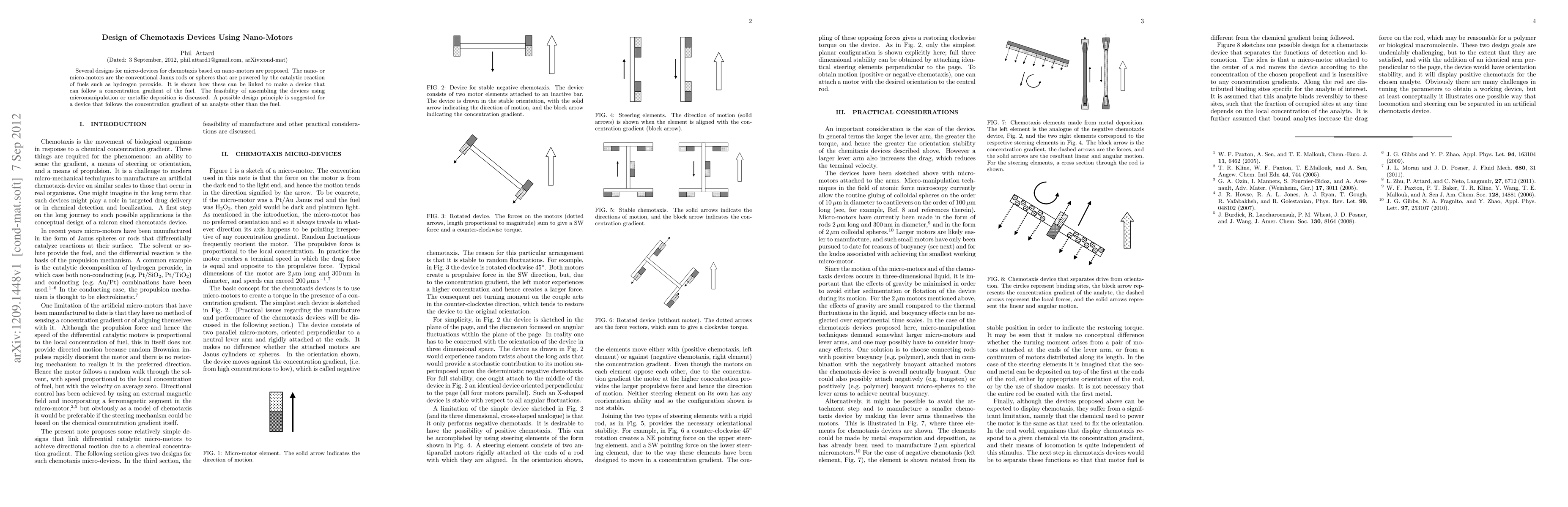 This paper proposes designs for chemotaxis micro-devices utilizing nano-motors powered by catalytic reactions, such as hydrogen peroxide, and explores their assembly methods and potential to follow concentration gradients of analytes. A suggested design principle extends the functionality to track non-fuel analytes.