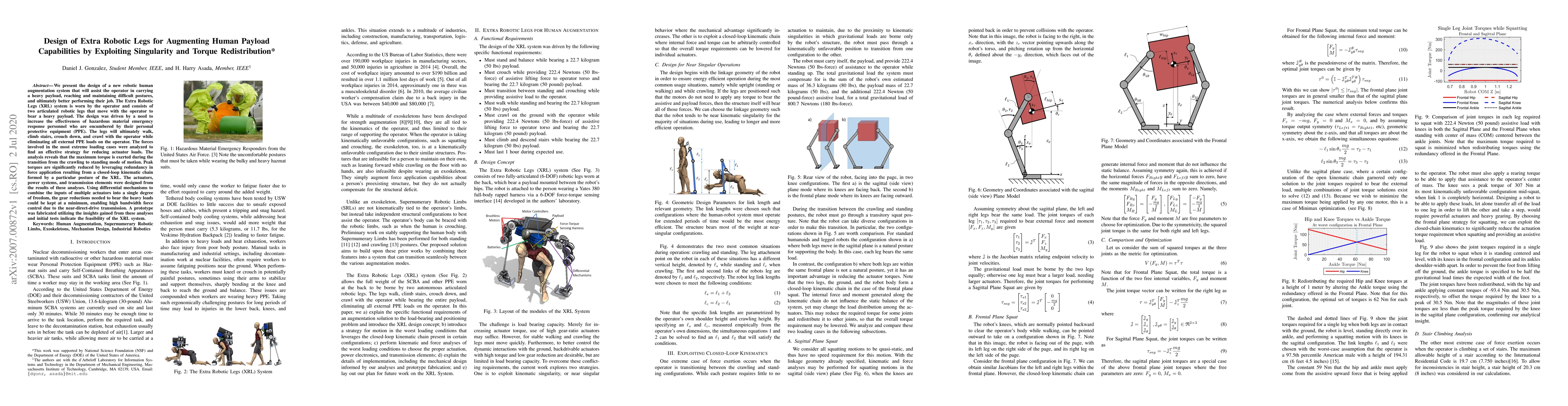 Researchers designed a wearable robotic leg system to assist humans in carrying heavy payloads, analyzing forces to reduce actuator loads and achieve high bandwidth force control. The system's prototype shows feasibility, enabling operators to walk, climb stairs, and perform hazardous tasks with reduced external equipment loads.
