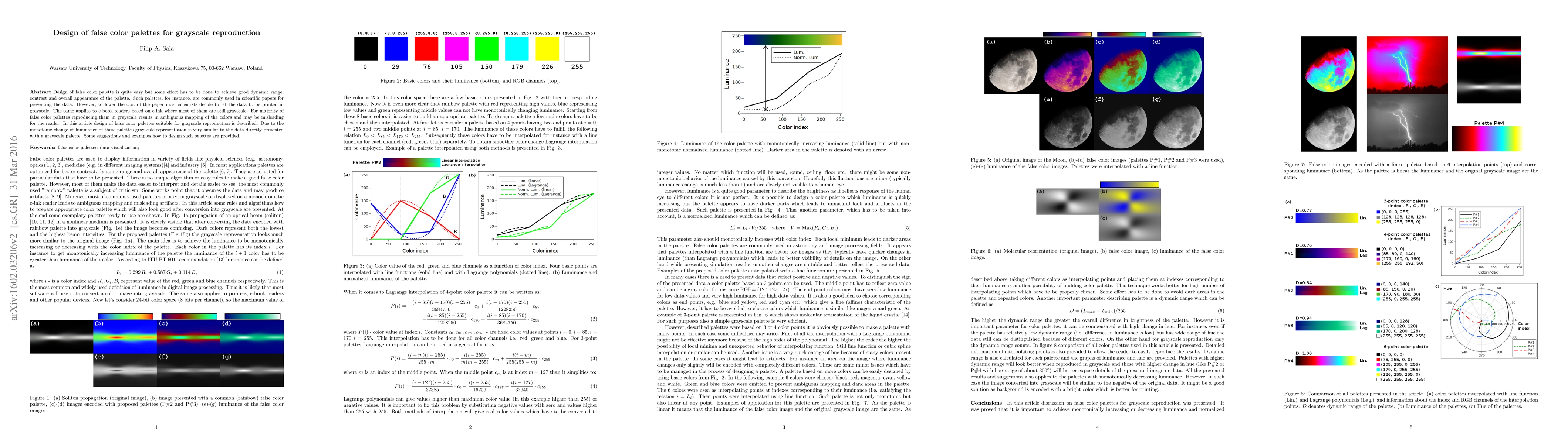 This paper discusses the design of false color palettes that maintain clarity and accuracy when reproduced in grayscale, addressing the challenges of dynamic range and contrast. It provides guidelines and examples for creating palettes that minimize ambiguity in scientific data presentations on grayscale mediums like e-books.