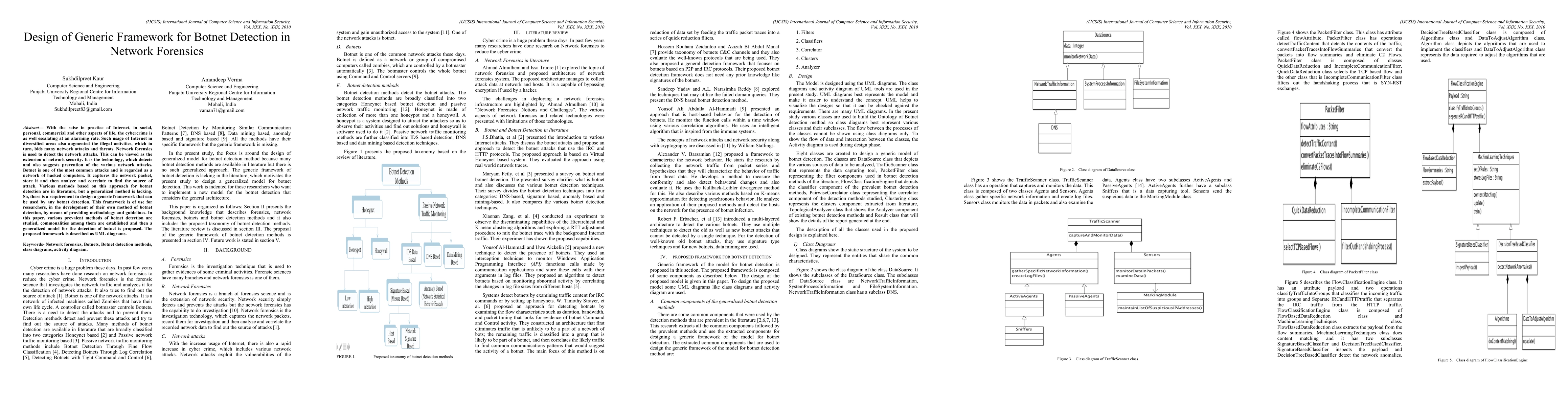 This paper proposes a generic framework for botnet detection in network forensics, addressing the lack of a generalized method. It studies prevalent detection methods, establishes commonalities, and provides a UML-based model to guide researchers in developing their own detection techniques.