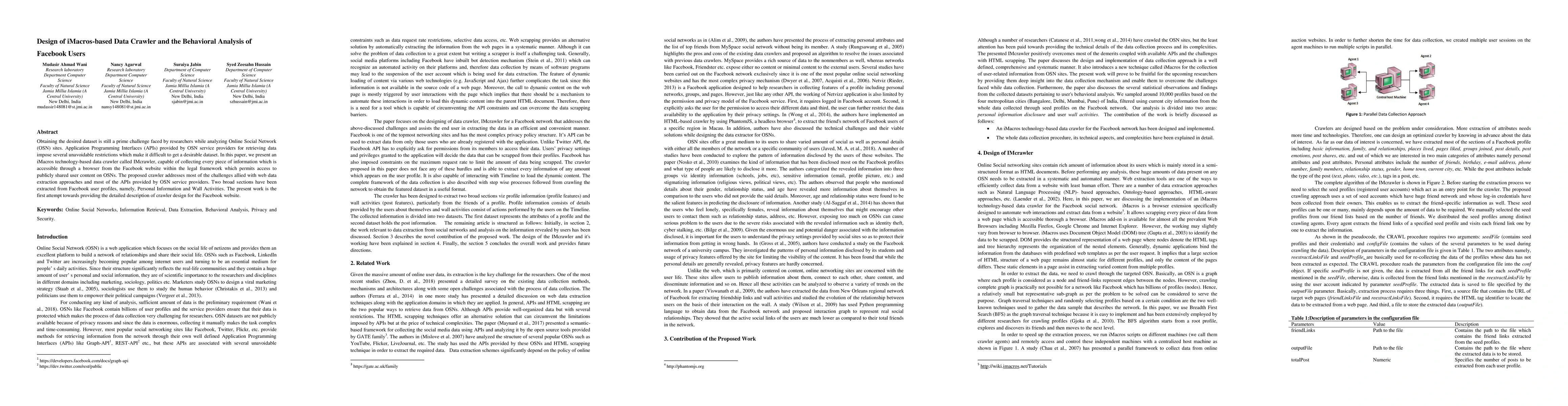 This paper introduces IMcrawler, an iMacros-based data crawler designed to collect publicly accessible user information from Facebook, overcoming the limitations of OSN APIs. The crawler extracts Personal Information and Wall Activities from Facebook profiles, marking the first detailed description of such a crawler design for the platform.