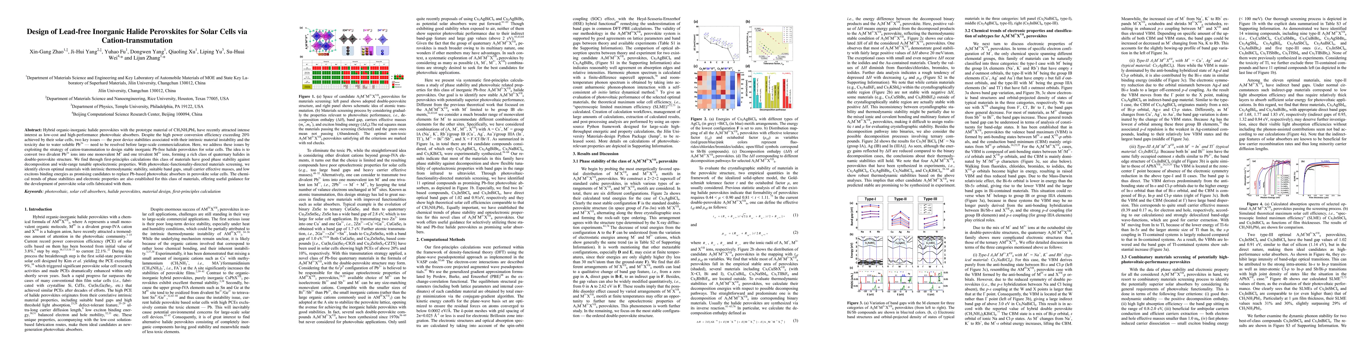 This paper proposes a strategy of cation-transmutation to design lead-free inorganic halide perovskites for solar cells, addressing the stability and toxicity issues of traditional Pb-based perovskites. The authors identify eleven optimal Pb-free materials with stable phase, suitable band gaps, and favorable optoelectronic properties for potential use in perovskite solar cells.