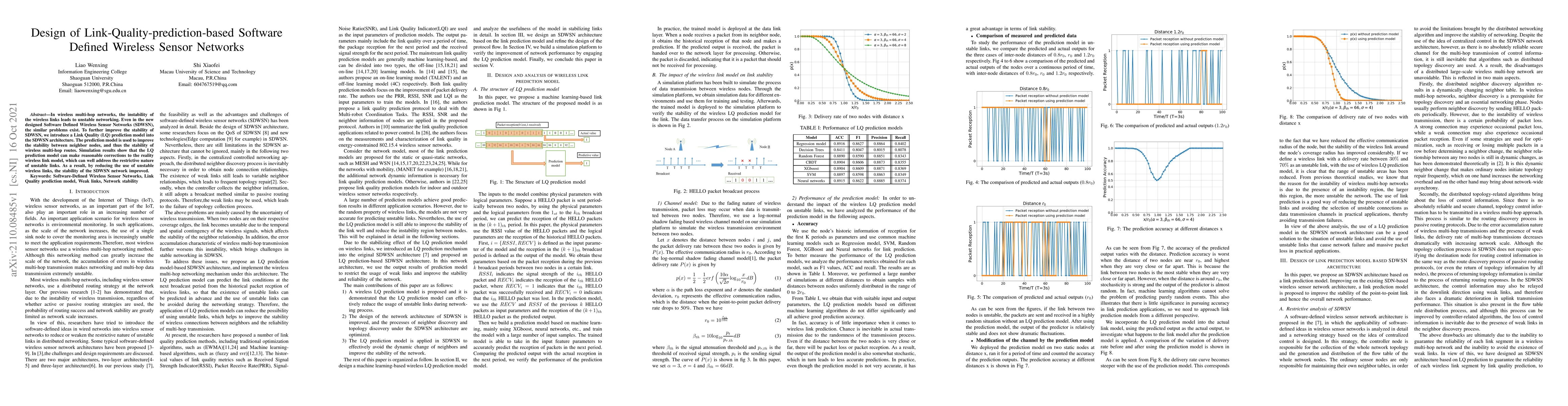 In wireless multi-hop networks, the instability of the wireless links leads to unstable networking. Even in the newly designed Software-Defined Wireless Sensor Networks (SDWSN), similar problems exist. To further improve the stability of SDWSN, we introduce a Link Quality (LQ) prediction model into the SDWSN architecture. The prediction model is used to improve the stability between neighbor nodes, and thus the stability of wireless multi-hop routes. Simulation results show that the LQ prediction model can make reasonable corrections to the reality wireless link model, which can well address the restrictive nature of unstable links. As a result, by reducing the use of unstable wireless links, the stability of the SDWSN network improved.