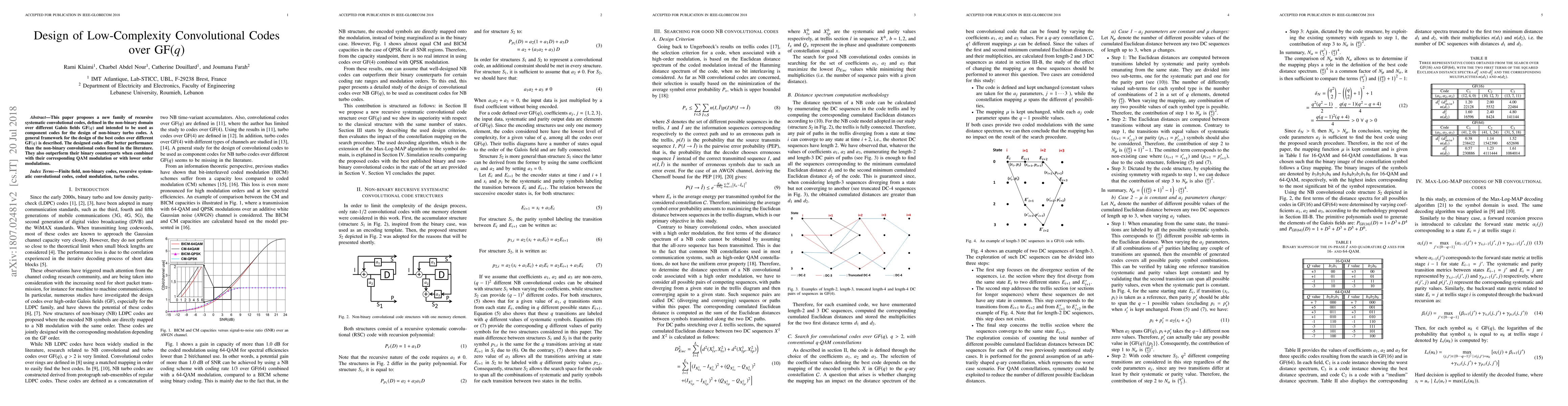 This paper proposes a new family of recursive systematic convolutional codes, defined in the non-binary domain over different Galois fields GF(q) and intended to be used as component codes for the design of non-binary turbo codes. A general framework for the design of the best codes over different GF(q) is described. The designed codes offer better performance than the non-binary convolutional codes found in the literature. They also outperform their binary counterparts when combined with their corresponding QAM modulation or with lower order modulations.