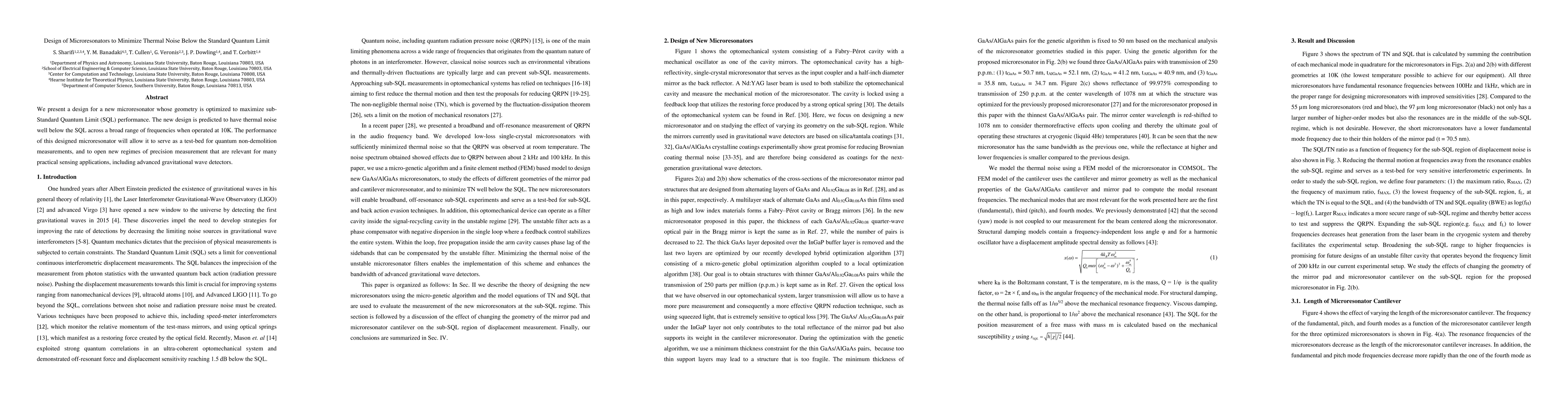 We present a design for a new microresonator whose geometry is optimized to maximize sub-Standard Quantum Limit (SQL) performance. The new design is predicted to have thermal noise well below the SQL across a broad range of frequencies when operated at 10K. The performance of this designed microresonator will allow it to serve as a test-bed for quantum non-demolition measurements, and to open new regimes of precision measurement that are relevant for many practical sensing applications, including advanced gravitational wave detectors.