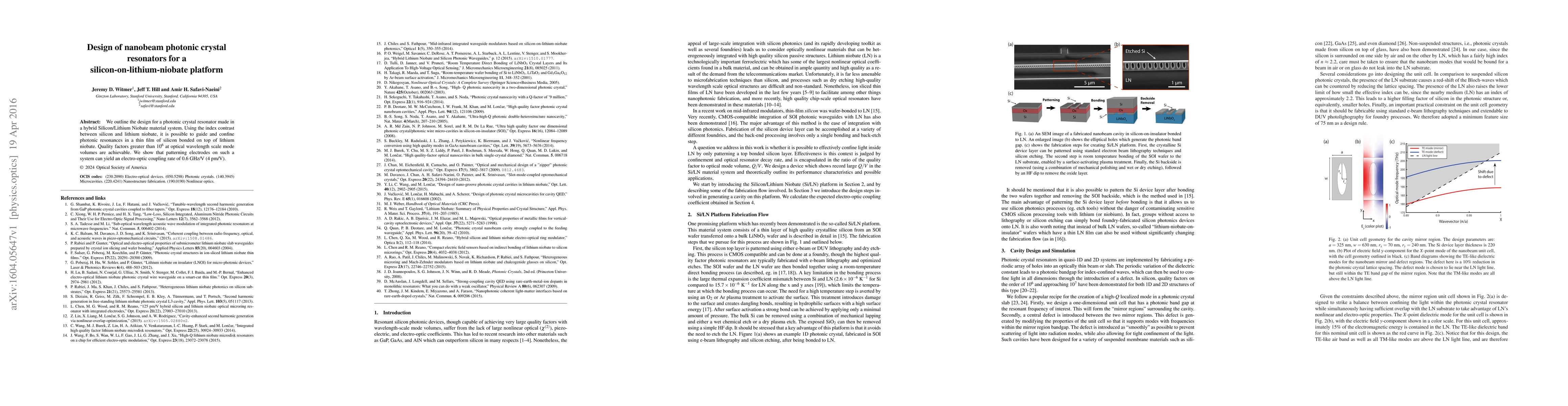 This paper designs a photonic crystal resonator using a hybrid Silicon/Lithium Niobate platform, achieving high-quality factors over $10^6$ and electro-optic coupling rates of 0.6 GHz/V (4 pm/V) through patterned electrodes.