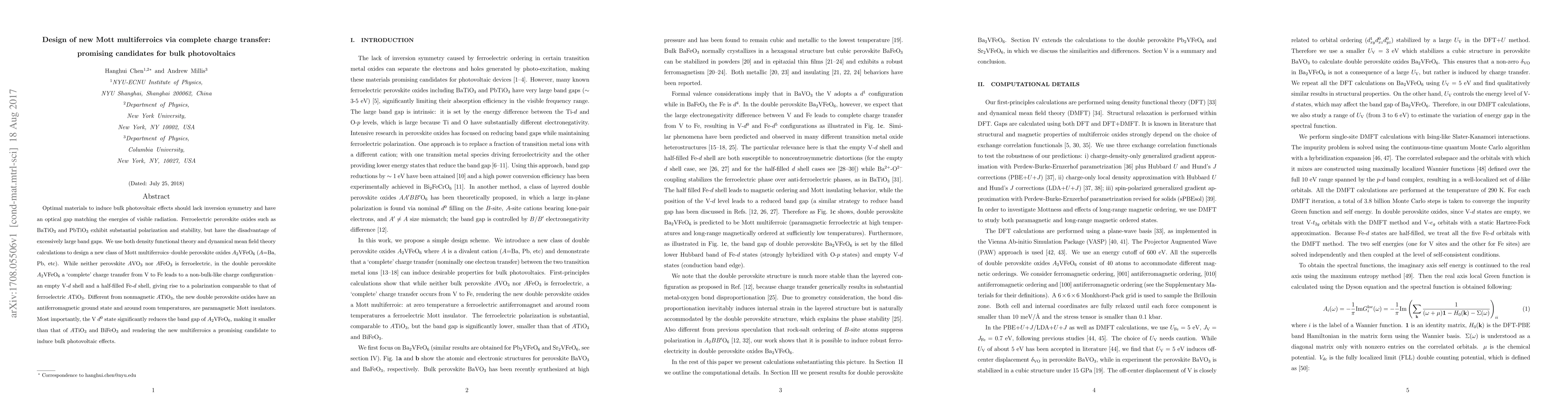 New Mott multiferroics with small band gaps are proposed as promising candidates for bulk photovoltaics due to their ability to transfer charge and induce polarization.