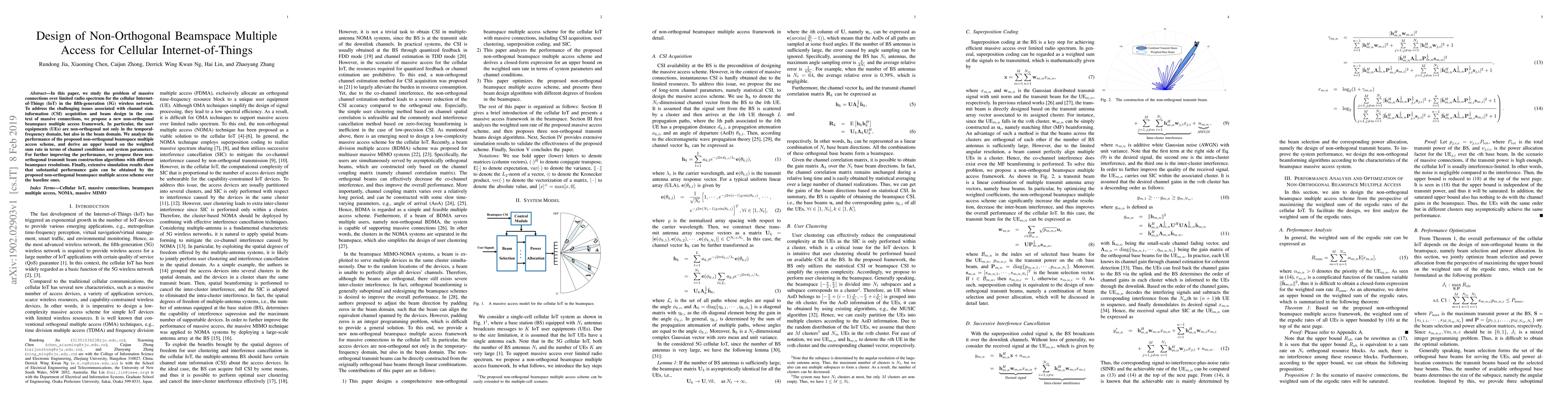 This paper proposes a non-orthogonal beamspace multiple access framework for 5G cellular Internet-of-Things to manage massive connections over limited spectrum. It introduces algorithms for non-orthogonal transmit beam construction and demonstrates significant performance gains through simulations.