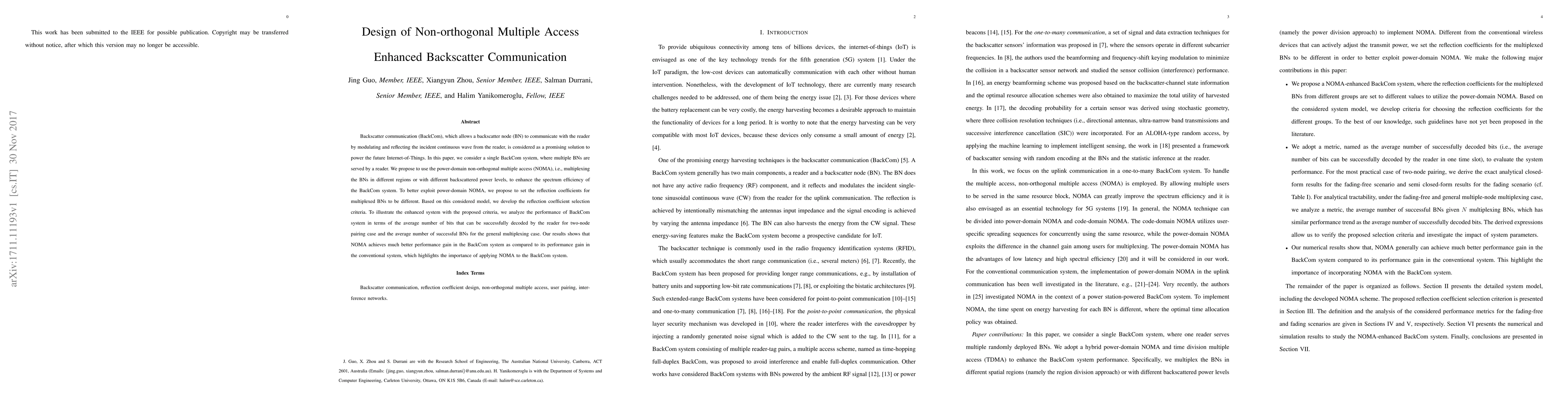 Researchers propose using non-orthogonal multiple access to enhance backscatter communication systems, achieving better performance gains than conventional methods.