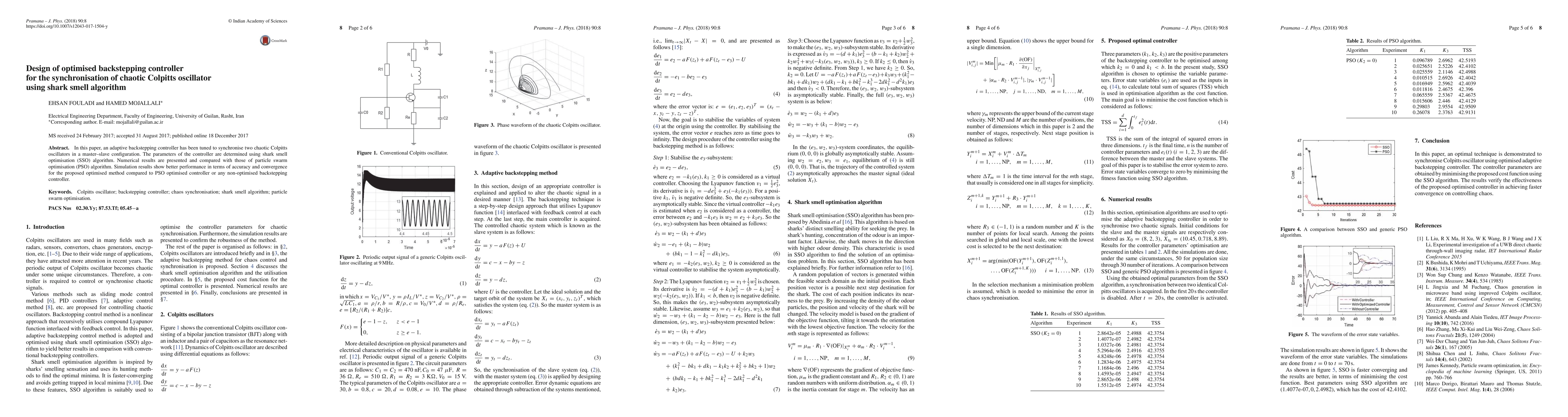 This paper designs an adaptive backstepping controller optimized by the shark smell algorithm to synchronize two chaotic Colpitts oscillators. Simulation results demonstrate superior accuracy and convergence compared to a PSO-optimized controller and non-optimized backstepping controllers.