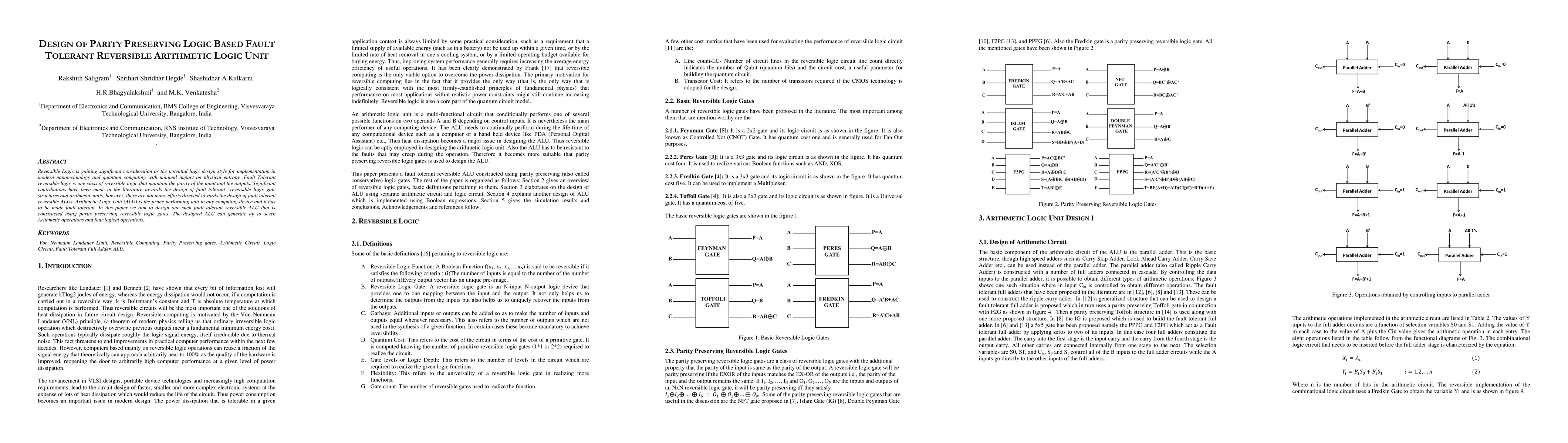 This paper presents a design for a fault tolerant reversible Arithmetic Logic Unit (ALU) using parity preserving reversible logic gates, capable of performing up to seven arithmetic and four logical operations, with minimal impact on physical entropy. The focus is on creating a reliable ALU for modern nanotechnology and quantum computing applications.