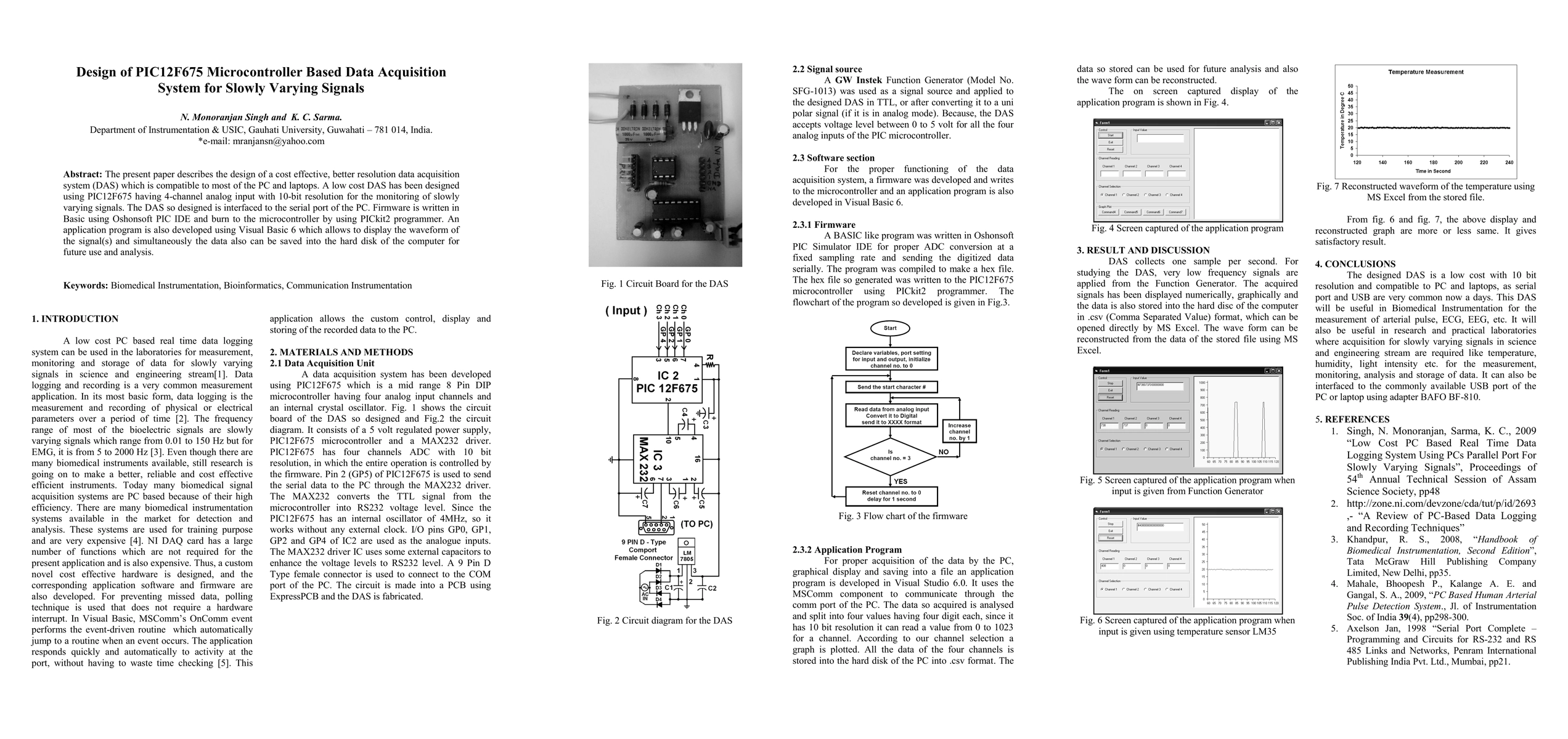 A cost-effective data acquisition system is designed using a PIC12F675 microcontroller for monitoring slowly varying signals, allowing for 10-bit resolution and interface to PCs via serial port.