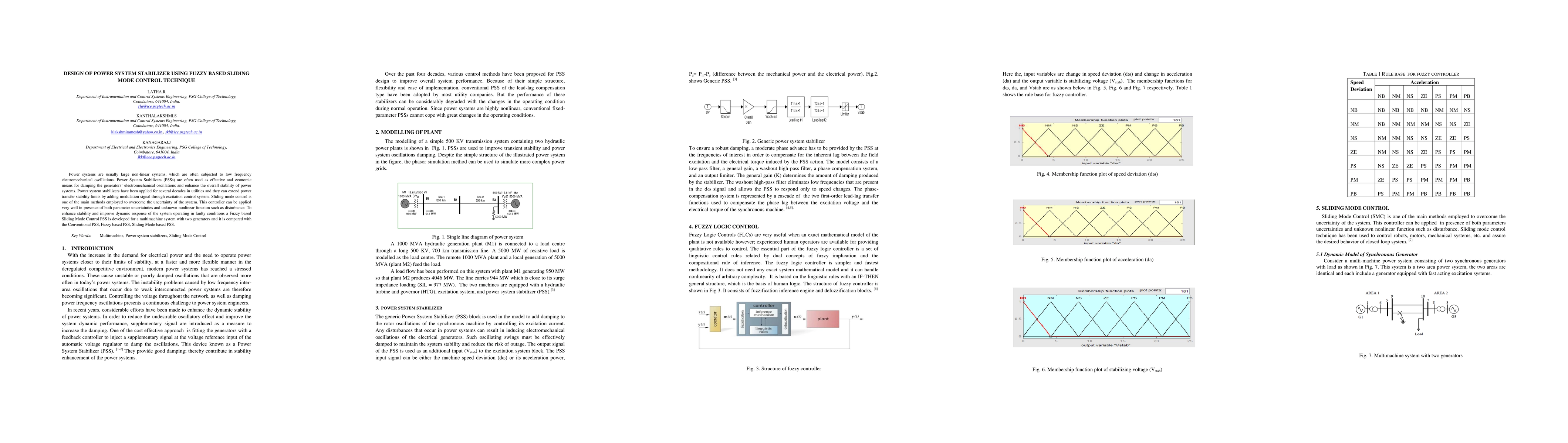 The proposed Fuzzy Sliding Mode Control based Power System Stabilizer provides a novel and effective solution for improving the stability and dynamic response of multi-machine power systems.