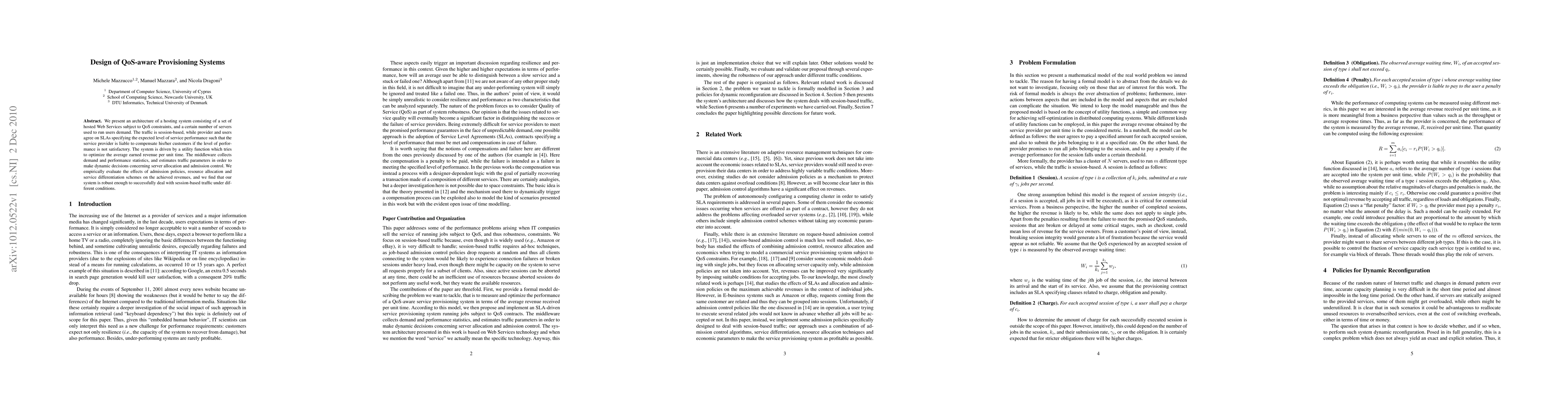 A QoS-aware hosting system optimizes revenue while ensuring performance levels meet SLAs, using a utility function to make dynamic decisions on server allocation and admission control.