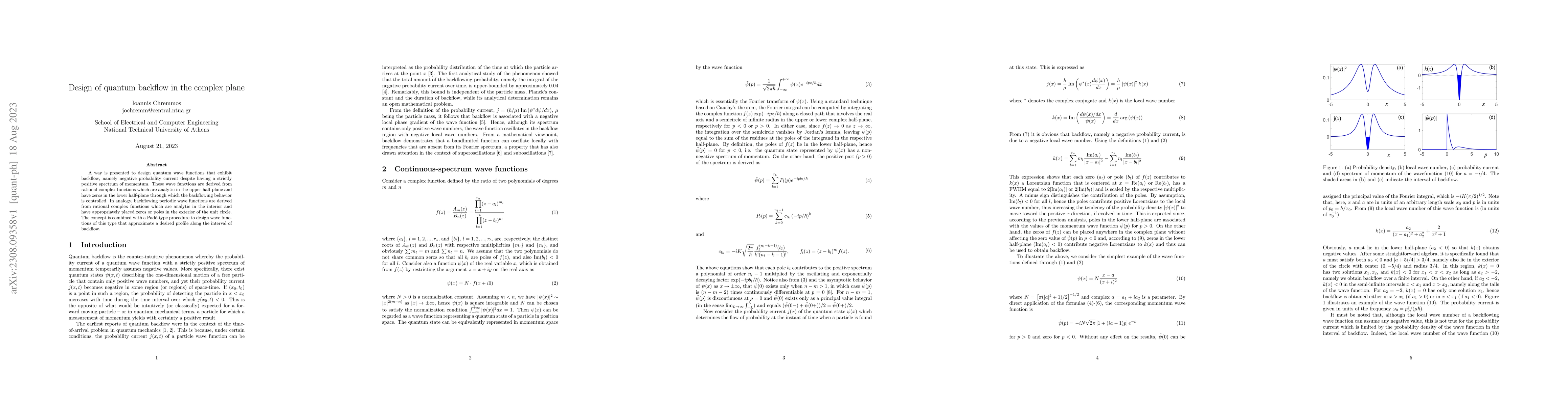 This paper introduces a method for designing quantum wave functions that demonstrate quantum backflow, characterized by negative probability current despite positive momentum spectrum. The approach utilizes rational complex functions with zeros strategically placed to control backflow behavior.