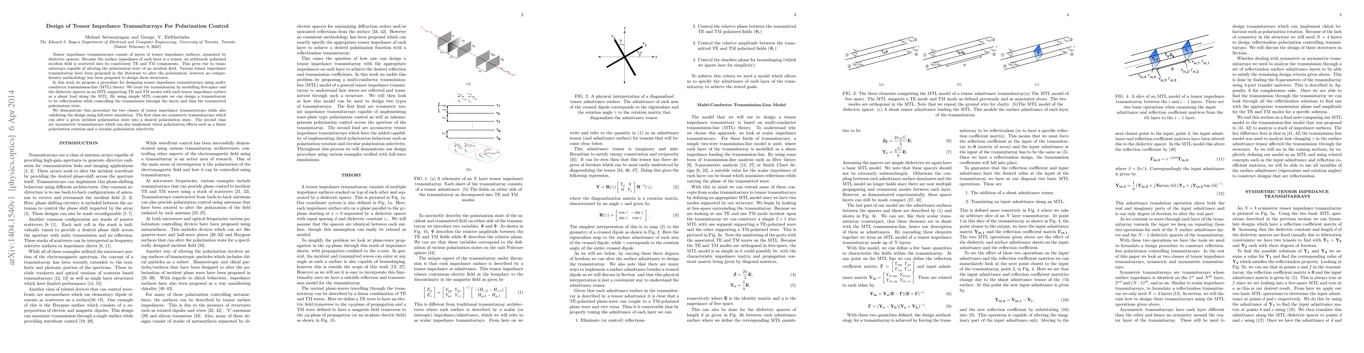 This paper proposes a methodology for designing tensor impedance transmitarrays using multi-conductor transmissionline theory to control the polarization state of incident fields. The approach models the transmitarray as an MTL with tensor impedance layers as shunt loads, enabling the design of reflectionless structures that manipulate TE and TM components, thus altering polarization states, validated through full-wave simulation.
