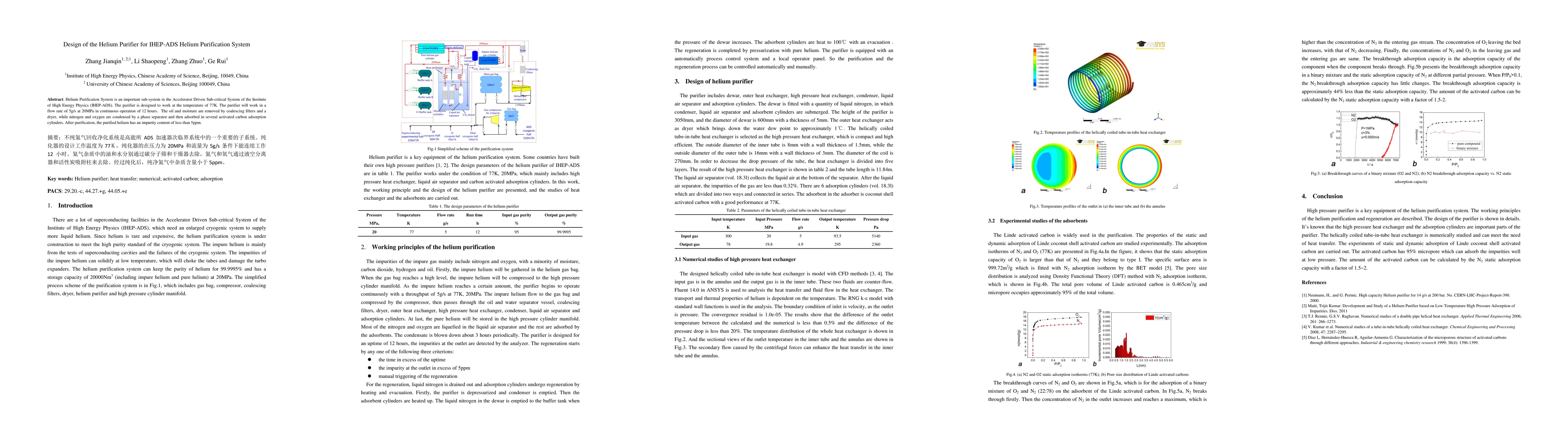 A helium purification system has been designed to remove impurities from helium gas at 77K, achieving a purity of less than 5ppm in continuous operation.