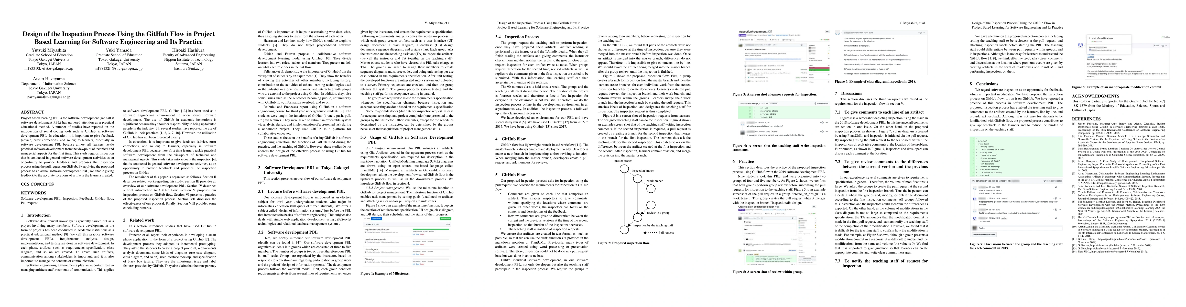 This study proposes an inspection process using GitHub pull requests to provide feedback in project-based learning for software engineering, enabling accurate location-based feedback to learners.