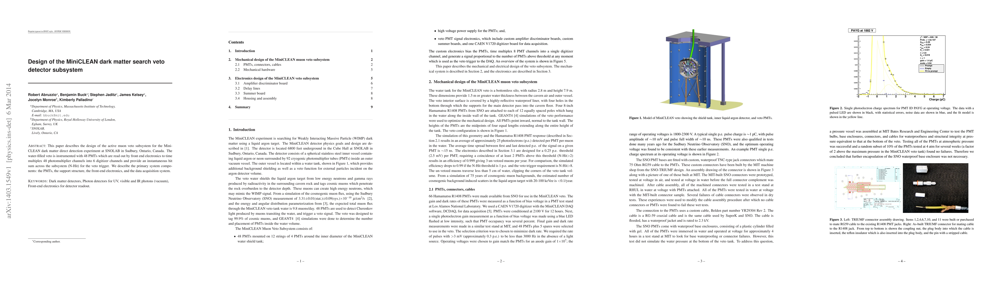 This paper details the design of the active muon veto subsystem for the MiniCLEAN dark matter detection experiment, featuring a water-filled veto with 48 PMTs and front-end electronics to time multiplex signals into a single trigger, enhancing the experiment's sensitivity. The design includes components like PMTs, support structure, and data acquisition systems.