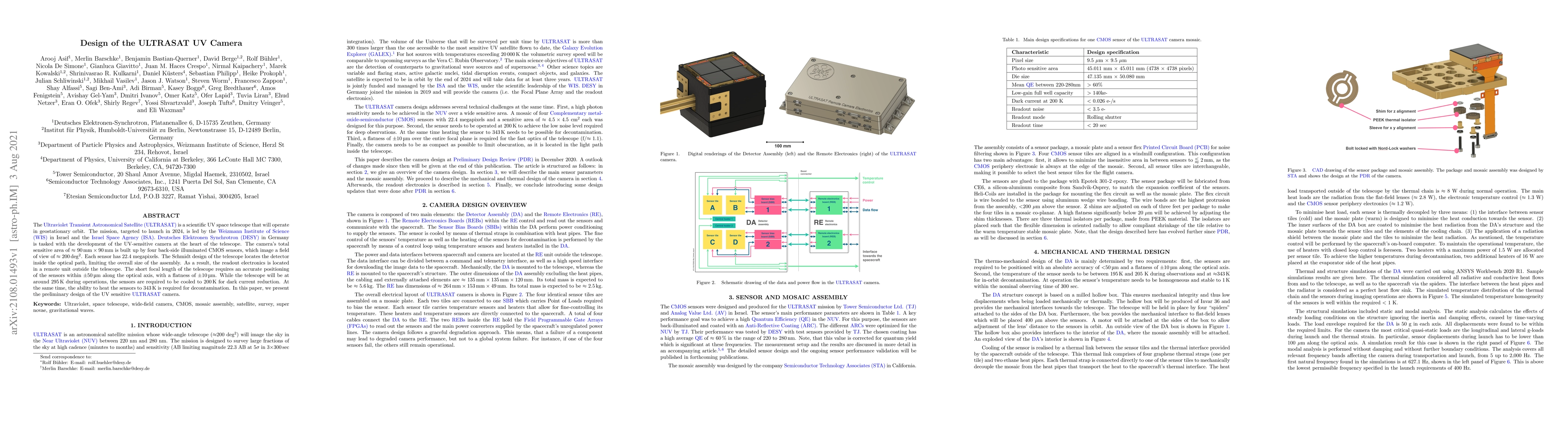 The ULTRASAT UV camera is a high-sensitivity camera for a geostationary space telescope, with four CMOS sensors working together to capture a wide field of view. The camera's design requires precise positioning and temperature control to optimize performance.