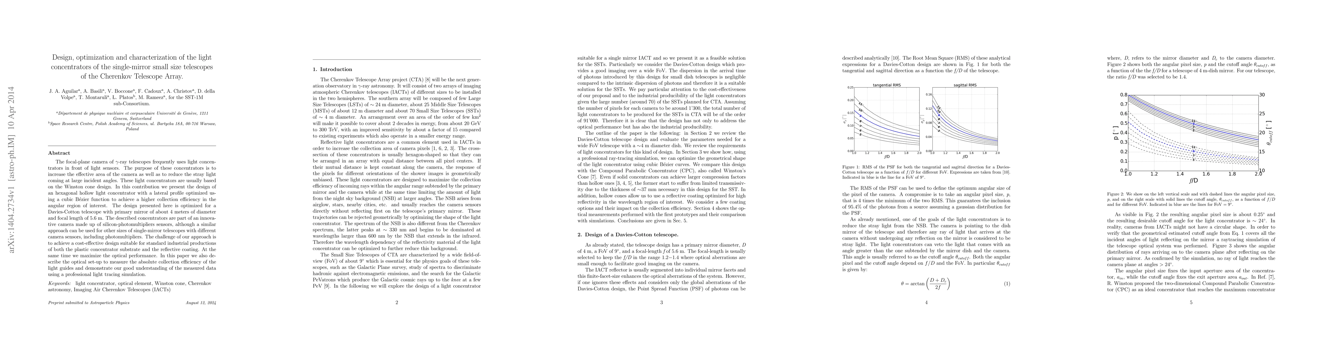 The focal-plane camera of $\gamma$-ray telescopes frequently uses light concentrators in front of light sensors. The purpose of these concentrators is to increase the effective area of the camera as well as to reduce the stray light coming at large incident angles. These light concentrators are usually based on the Winston cone design. In this contribution we present the design of an hexagonal hollow light concentrator with a lateral profile optimized using a cubic B\'ezier function to achieve a higher collection efficiency in the angular region of interest. The design presented here is optimized for a Davies-Cotton telescope with primary mirror of about 4 meters of diameter and focal length of 5.6 m. The described concentrators are part of an innovative camera made up of silicon-photomultipliers sensors, although a similar approach can be used for other sizes of single-mirror telescopes with different camera sensors, including photomultipliers. The challenge of our approach is to achieve a cost-effective design suitable for standard industrial productions of both the plastic concentrator substrate and the reflective coating. At the same time we maximize the optical performance. In this paper we also describe the optical set-up to measure the absolute collection efficiency of the light guides and demonstrate our good understanding of the measured data using a professional light tracing simulation.